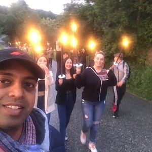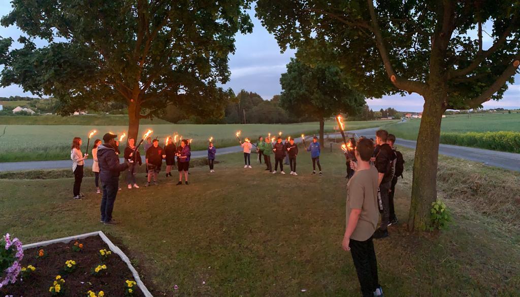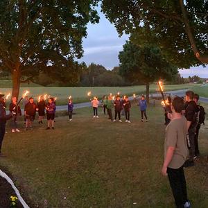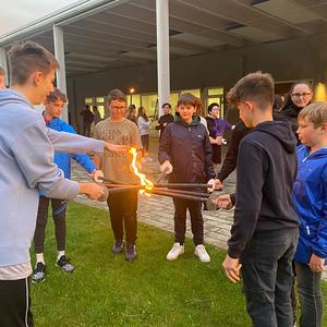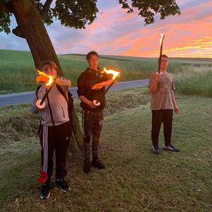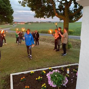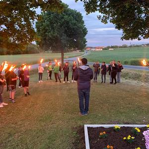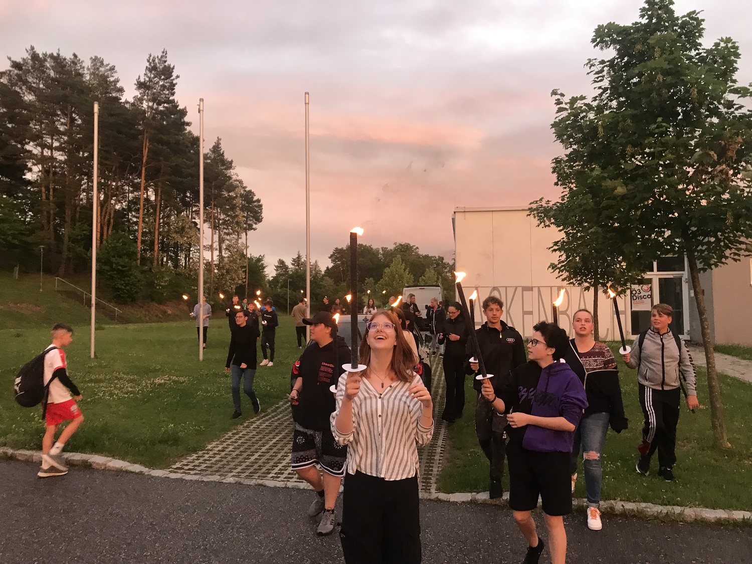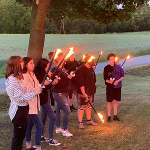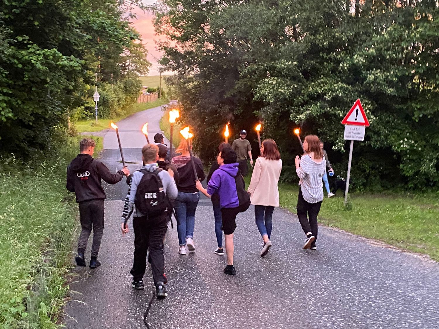 Bevor die Gruppe dann mit ihren Fackeln zur Wanderung aufbrach, gab es noch eine kleine Jause. In wunderbarer Abendstimmung mit bester Laune marschierten die Jugendlichen zur Florianisäule, wo der stimmungsvolle Abend mit einer Andacht endete.