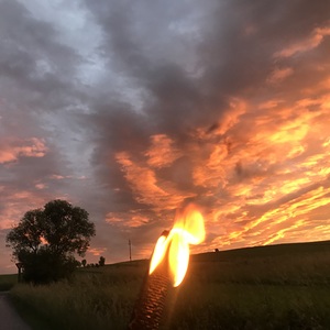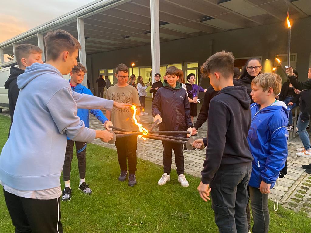Passender hätte die Abendstimmung für die Fackelwanderung zum Thema „Feuer und Flamme“ nicht sein können. Man hatte das Gefühl, der Himmel brennt mit den Fackeln mit.