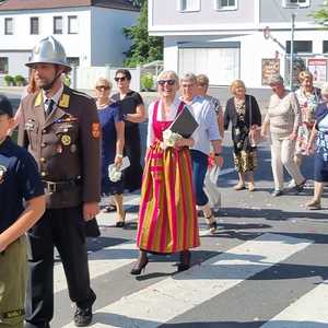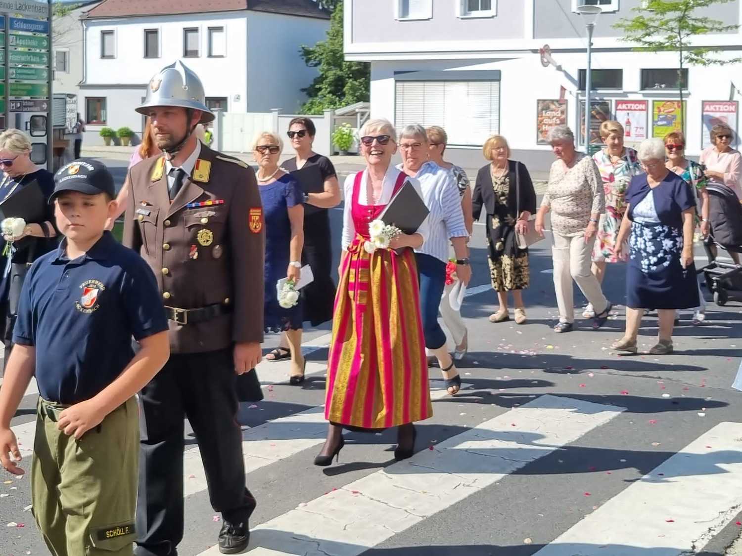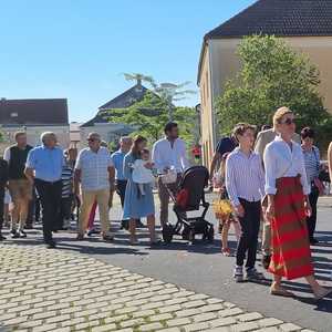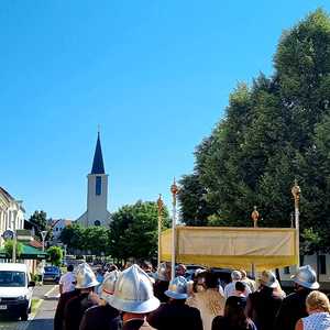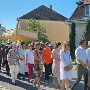 Begonnen hat das „Hochfest des Leibes und Blutes Christi“ in der Kirche. Die anschließende Prozession führte uns zu 4 Altären und dann wieder zum Schlußsegen zurück in die Kirche. Musikalisch umrahmt wurde der Umzug von der Musikkapelle Lackenbach.