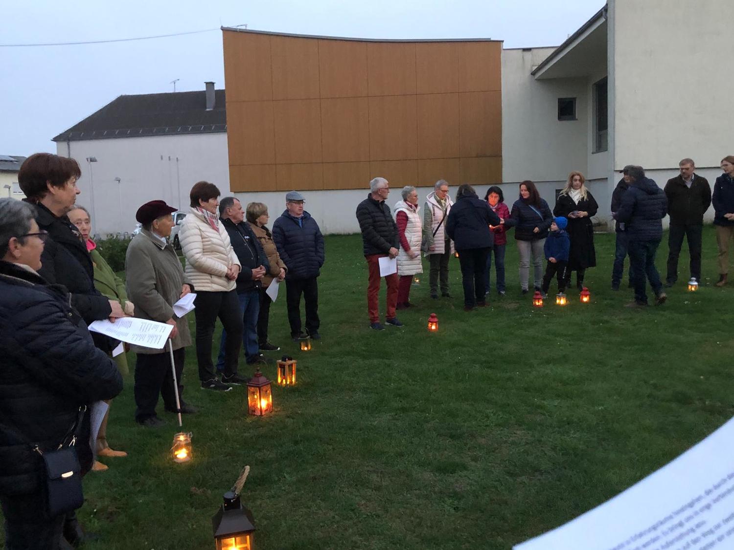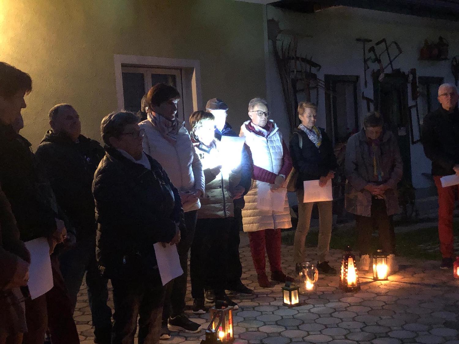 Am Sonntag, dem 30. Oktober fand eine Rosenkranzandacht mit Lichterprozession statt. Treffpunkt zur 1. Station war der Pfarrhofgarten Kobersdorf, wo wir eingeladen waren, unsere Lebensgeschichten mit den Bibelgeschichten zu verknüpfen; unsere Glaubenserfahrungen in „Räume“ zu tauchen, die die Gebete des Rosenkranzes eröffnen.