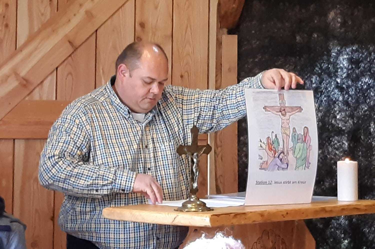 Die Kinder haben die einzelnen Kreuzwegstationen selbst gemalt und Gottfried aus Tschurndorf – Vater eines Erstkommunionkindes - hat dazu eine kindergerechte Andacht vorbereitet. Zu jeder Station wurde von den Kindern eine Fürbitte vorgetragen.