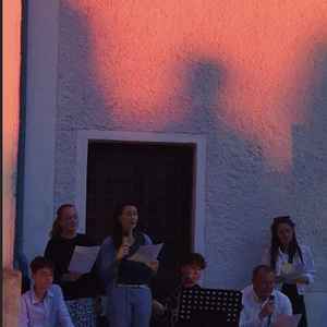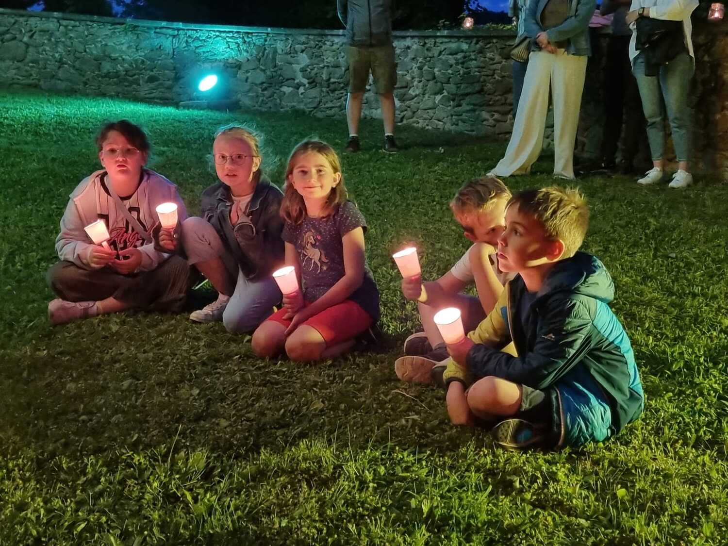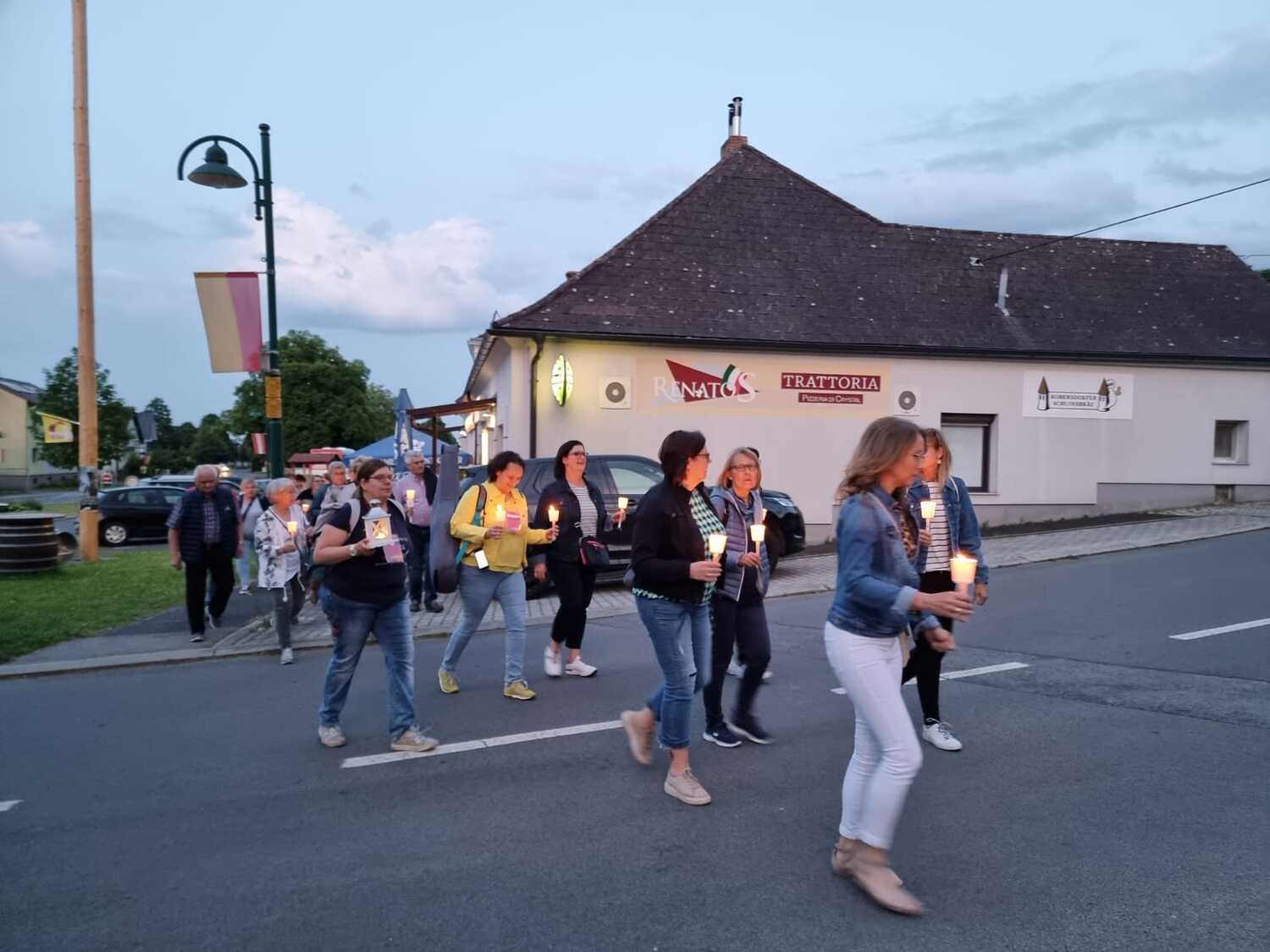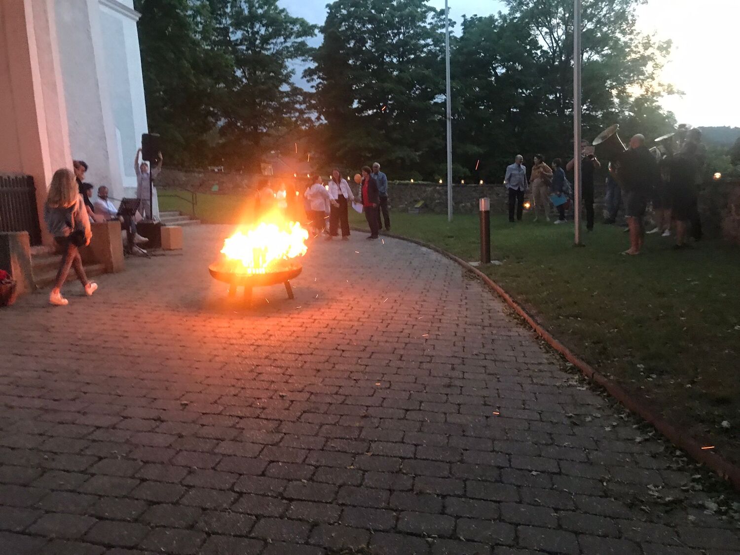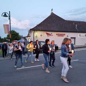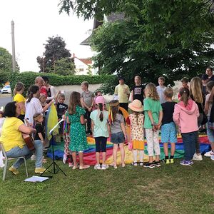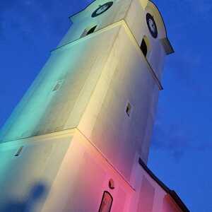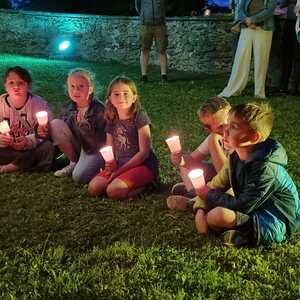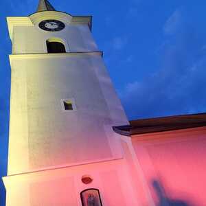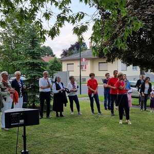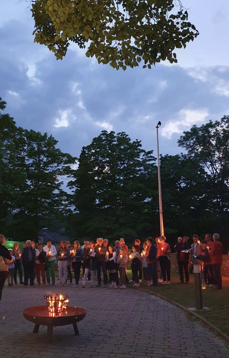 Mit einer Kerzen- und Laternenwanderung ging es nun zum Kirchenhof der katholischen Kirche. Diese war bereits in Regenbogenfarben sehr feierlich beleuchtet. Das Musikprogramm mit Bläsern und der Sängergruppe der Familie Tröscher war sehr vielfältig und unterhaltsam.