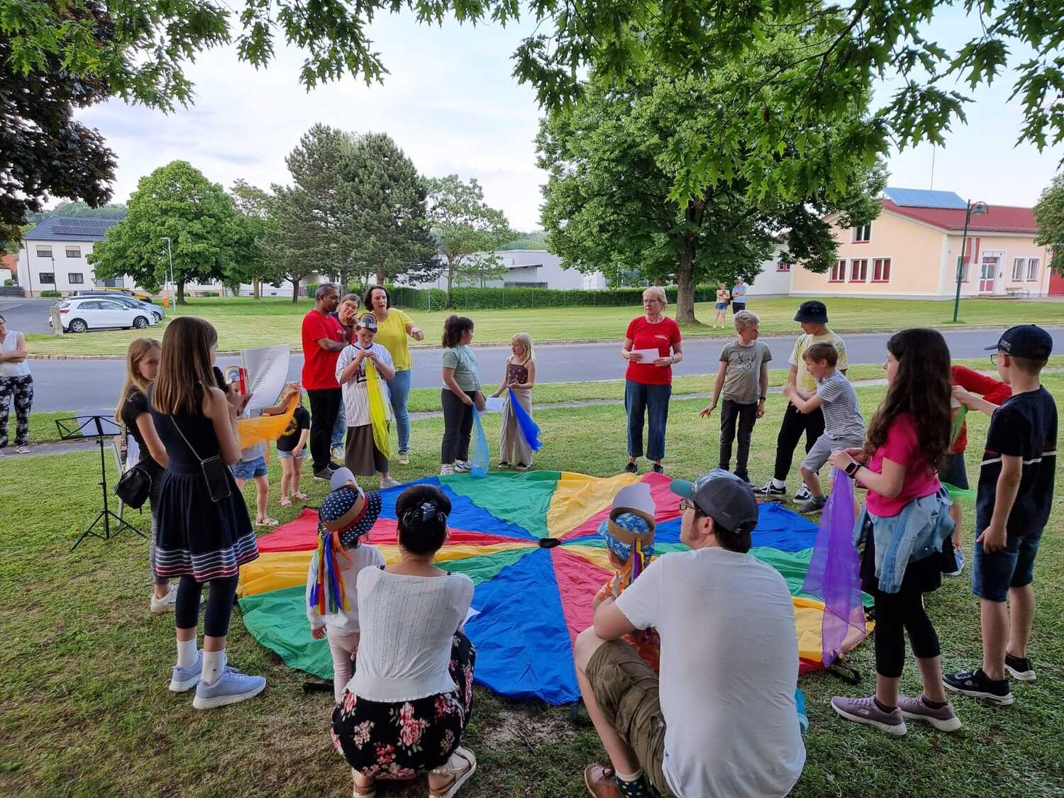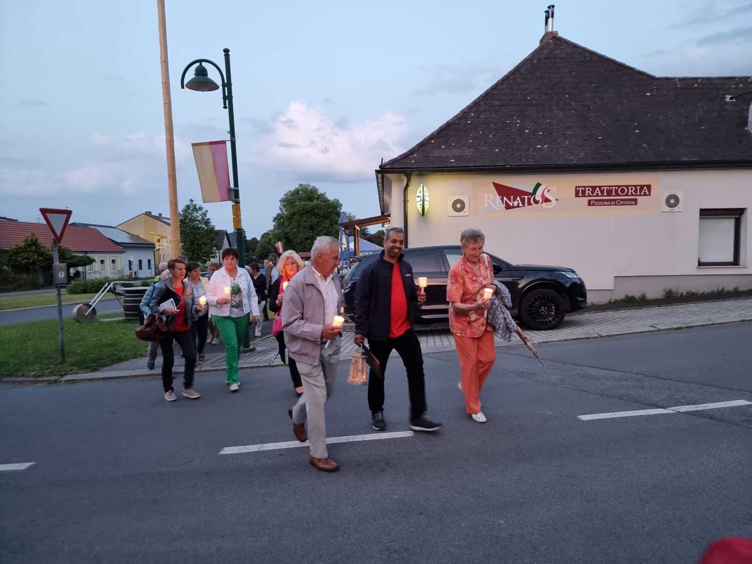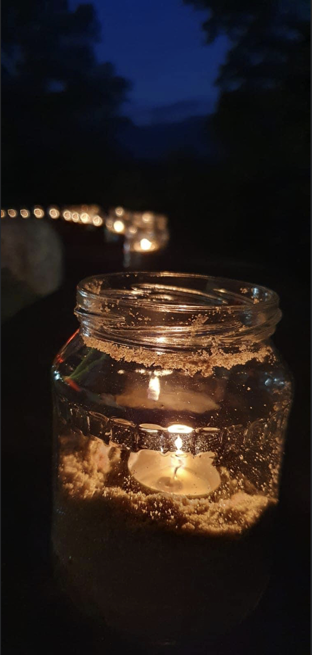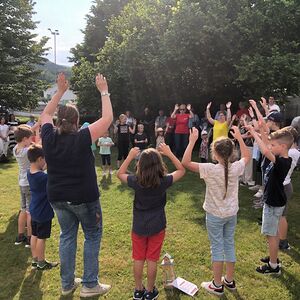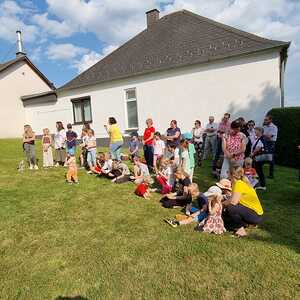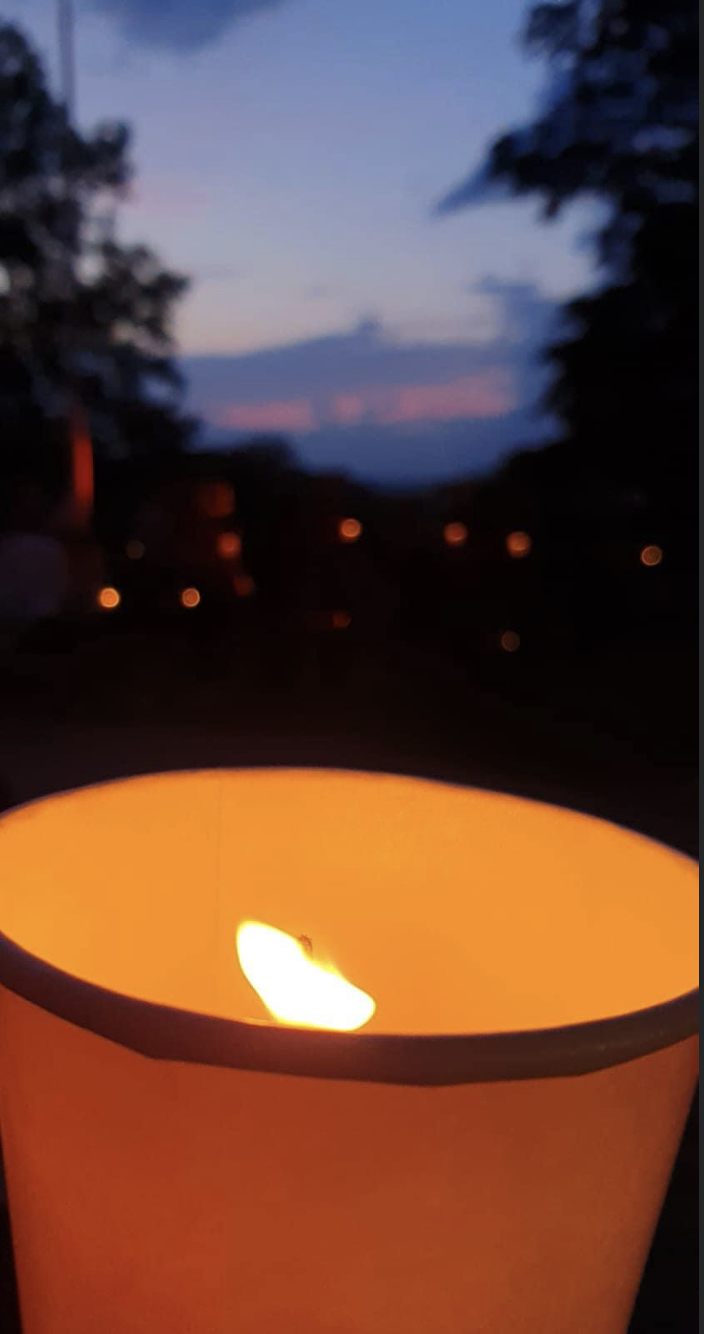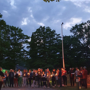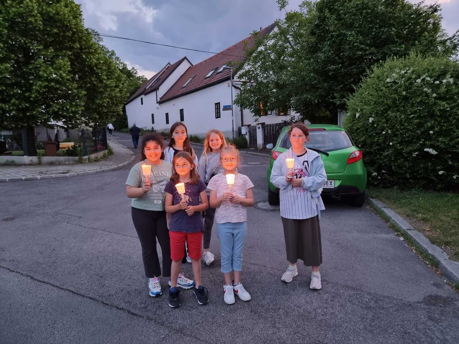 Mit einer Kerzen- und Laternenwanderung ging es nun zum Kirchenhof der katholischen Kirche. Diese war bereits in Regenbogenfarben sehr feierlich beleuchtet. Das Musikprogramm mit Bläsern und der Sängergruppe der Familie Tröscher war sehr vielfältig und unterhaltsam.