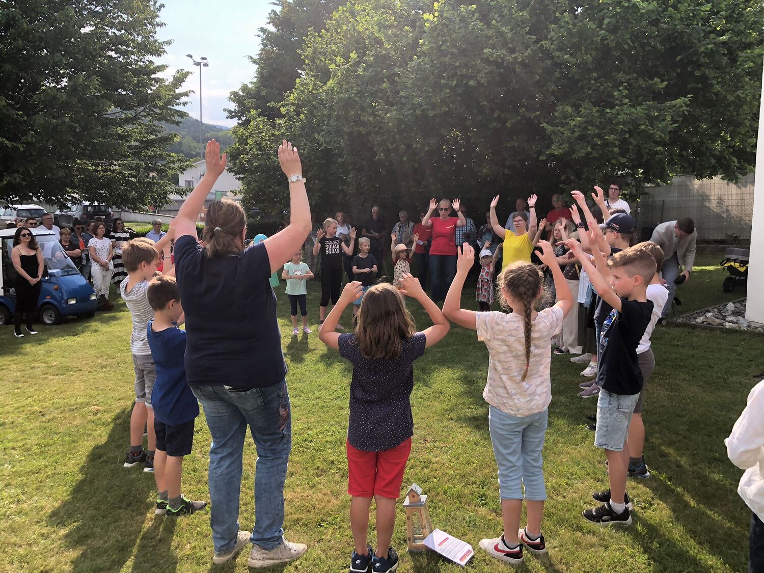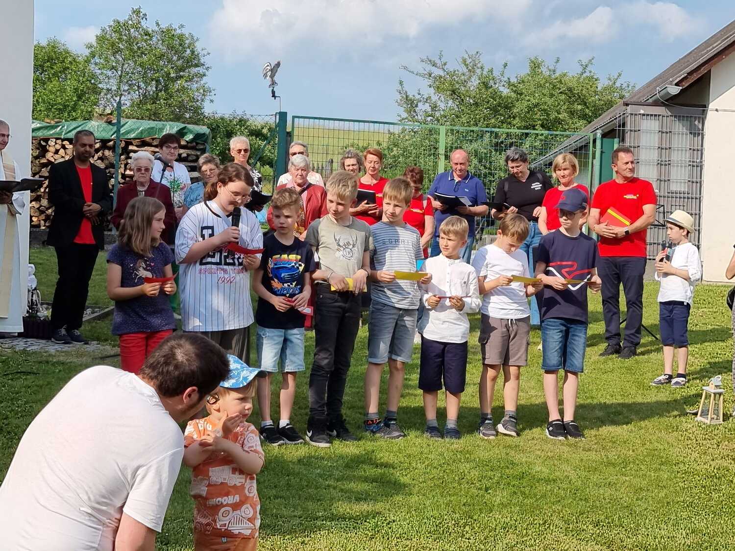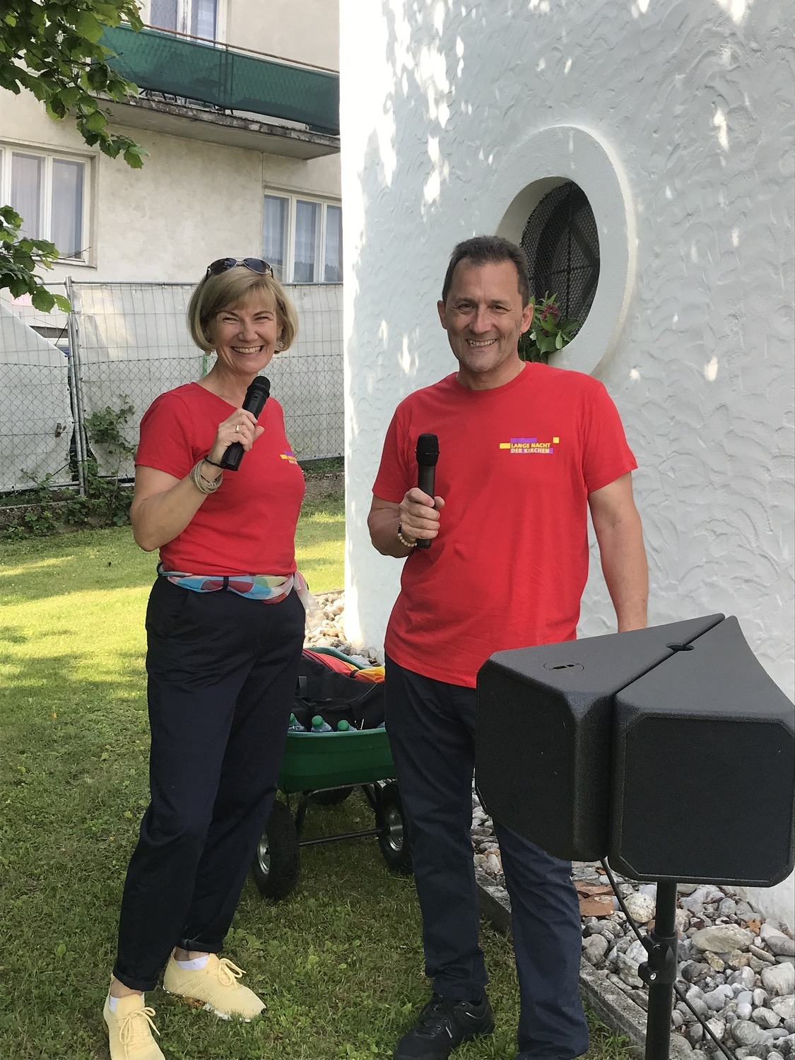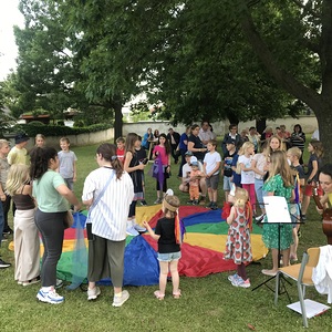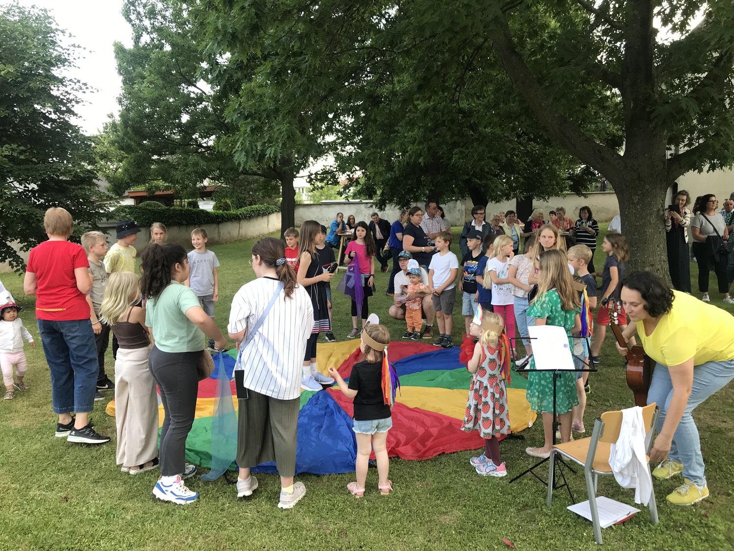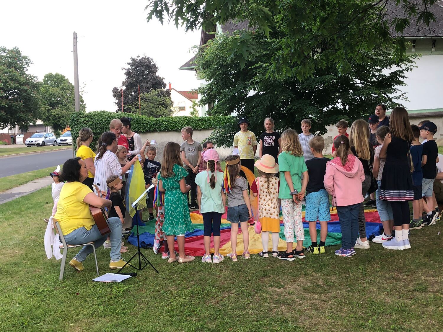 Mit einer Kerzen- und Laternenwanderung ging es nun zum Kirchenhof der katholischen Kirche. Diese war bereits in Regenbogenfarben sehr feierlich beleuchtet. Das Musikprogramm mit Bläsern und der Sängergruppe der Familie Tröscher war sehr vielfältig und unterhaltsam.