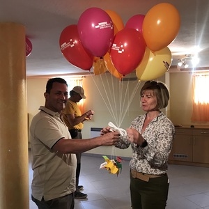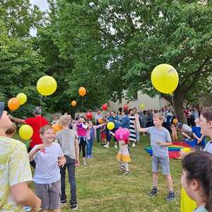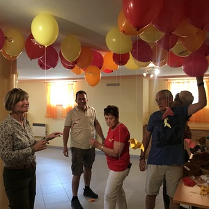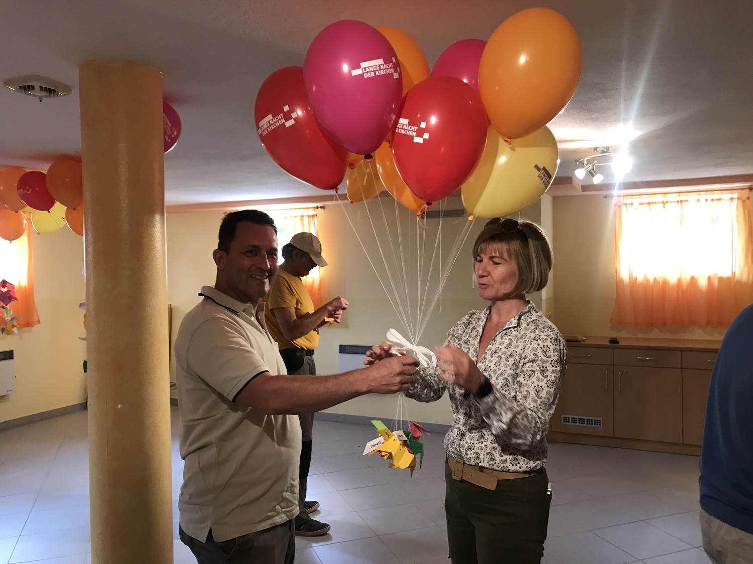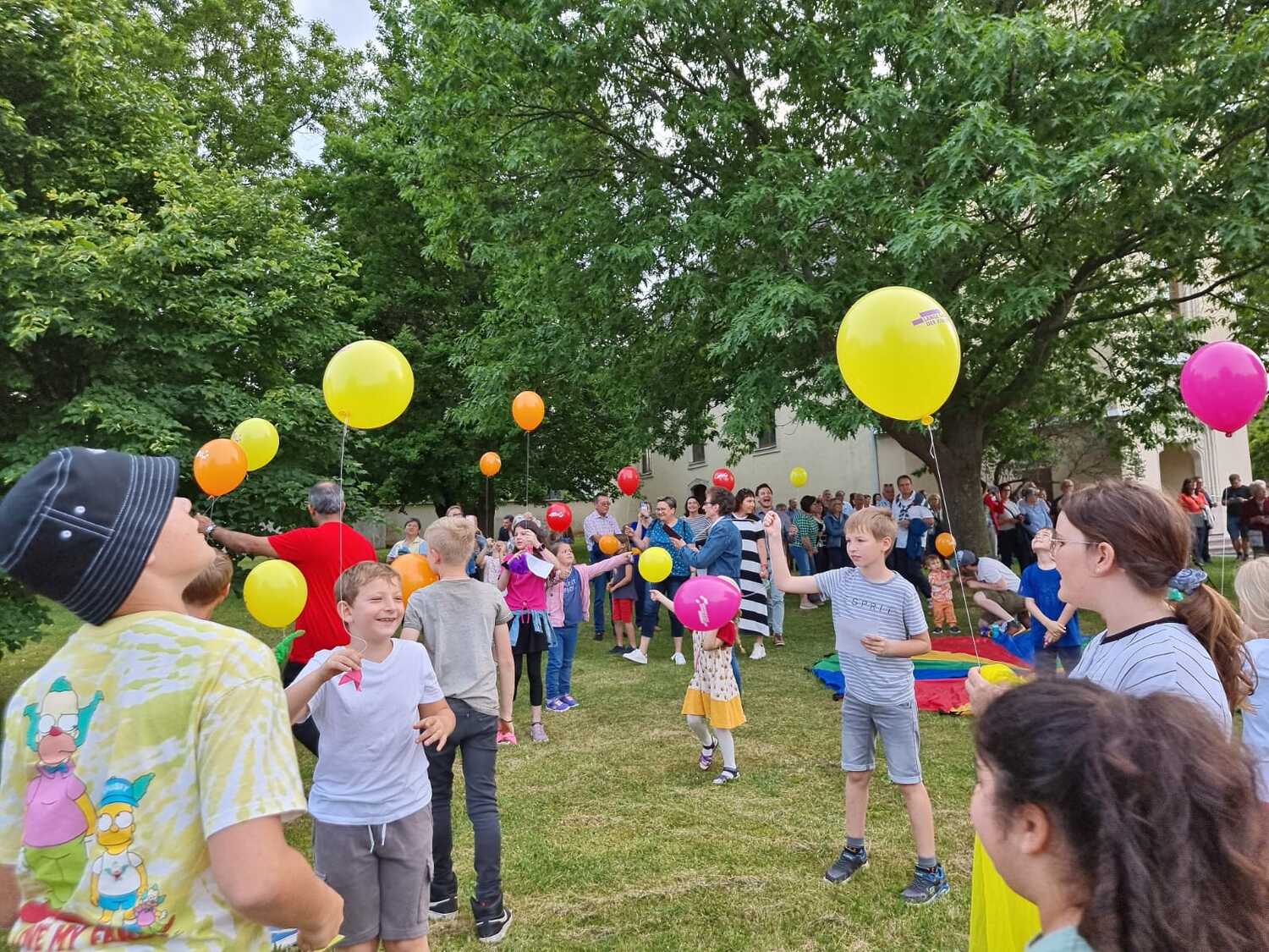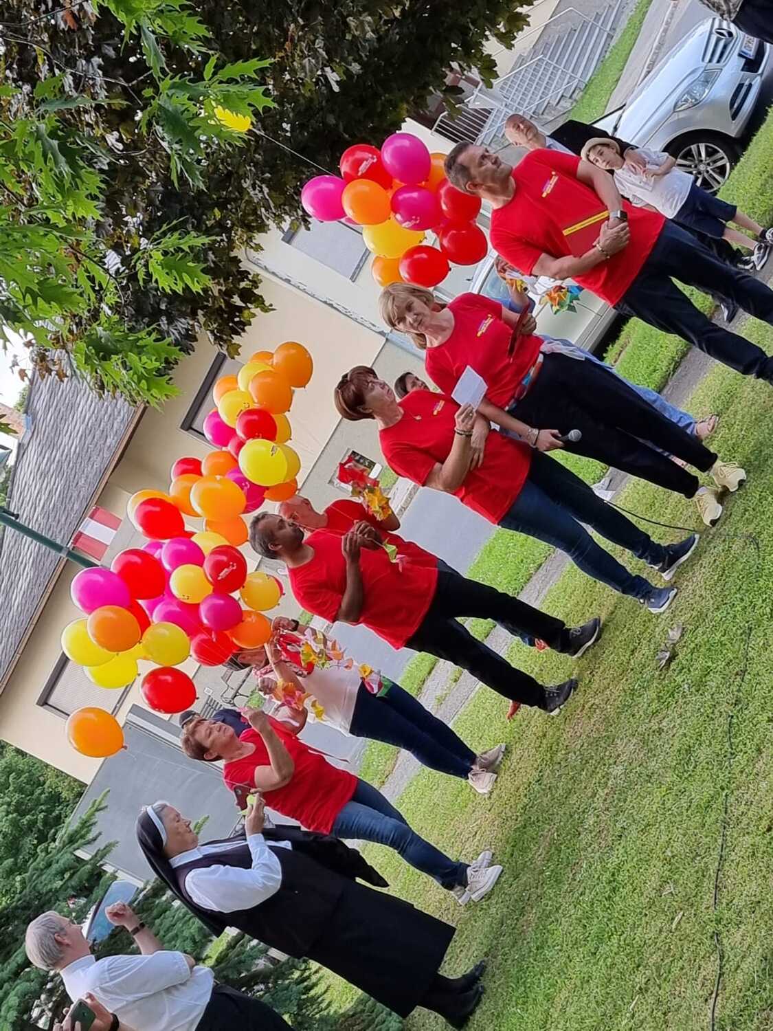 Nach kurzem Fußweg in Richtung evangelische Kirche wurden wir mit Glockengeläut am Martin Luther Platz von den Kindern empfangen. Eine köstliche Agape war bereits von der katholischen Jugend vorbereitet. Nach dem Steigen der Luftballone zum Zeichen des Friedens wurde in der evangelischen Kirche das weitere Programm dargeboten.