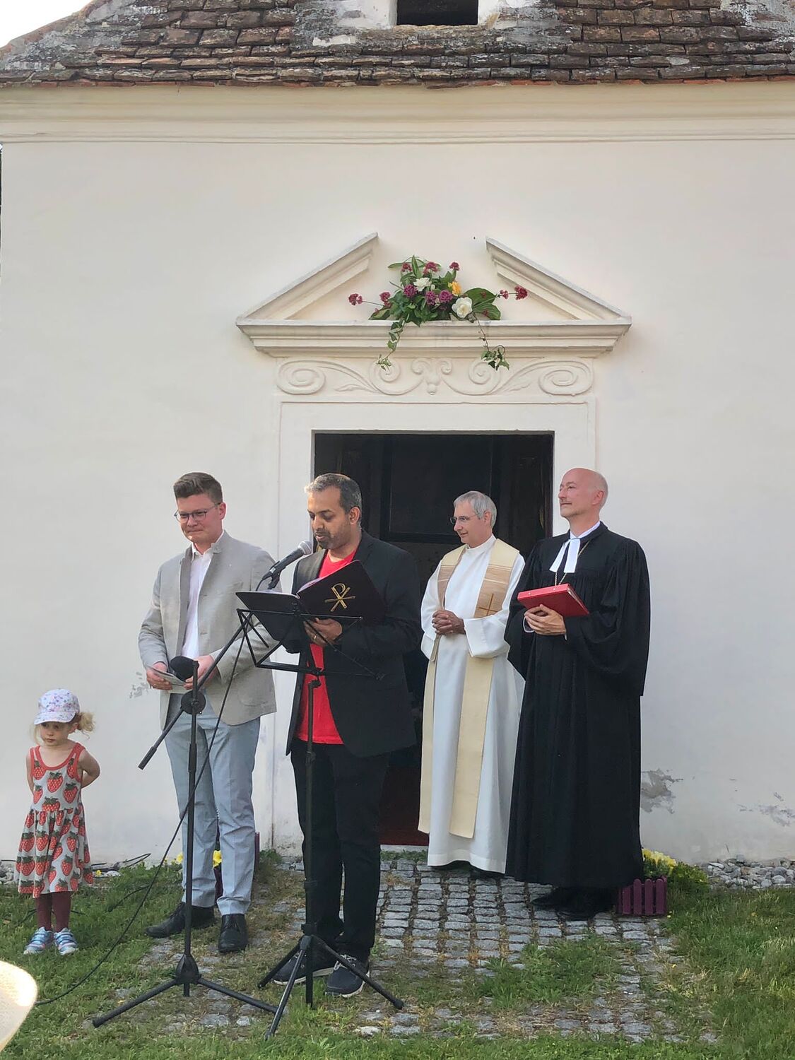 Nach der Kindersegnung zogen die zahlreichen Kinder zum evangelischen Gemeindezentrum, um dort ein großartiges Kinderprogramm nach dem Motto „Lasst die Kinder zu mir kommen“ gestalten und genießen zu können. Die nächste Station führte die Besucher:innen zur Schlosskapelle des bekannten Wasserschlosses von Kobersdorf. Es begrüßte uns die Eigentümerin Frau Anna Schlanitz-Bolldorf. Im Zuge des geschichtlichen Vortrages und anschließender Führung konnte die historische Schlosskapelle besucht werden. Ganz besonders freuten wir uns über den Besuch von Sr. Consolata Supper, Provinzoberin vom Orden der Schwestern vom göttlichen Erlöser der Stadtpfarre Eisenstadt Oberberg. Musikalische Beiträge der Kirchenchöre Oberpetersdorf und Kobersdorf sowie besinnliche Meditationen in der Schlosskapelle rundeten diesen Programmpunkt ab.