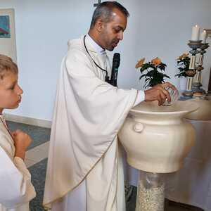 Nachdem der Kircheninnenraum nun in neuem Glanz erstrahlt, war es eine besondere Freude, dass gerade am Patroziniumsfest – zu Ehren der Apostel Petrus und Paulus - der erste Gottesdienst wieder in der Pfarrkirche gefeiert werden konnte und Pfarrer Shinto die Segnung des neu renovierten Kirchenraumes übernahm.