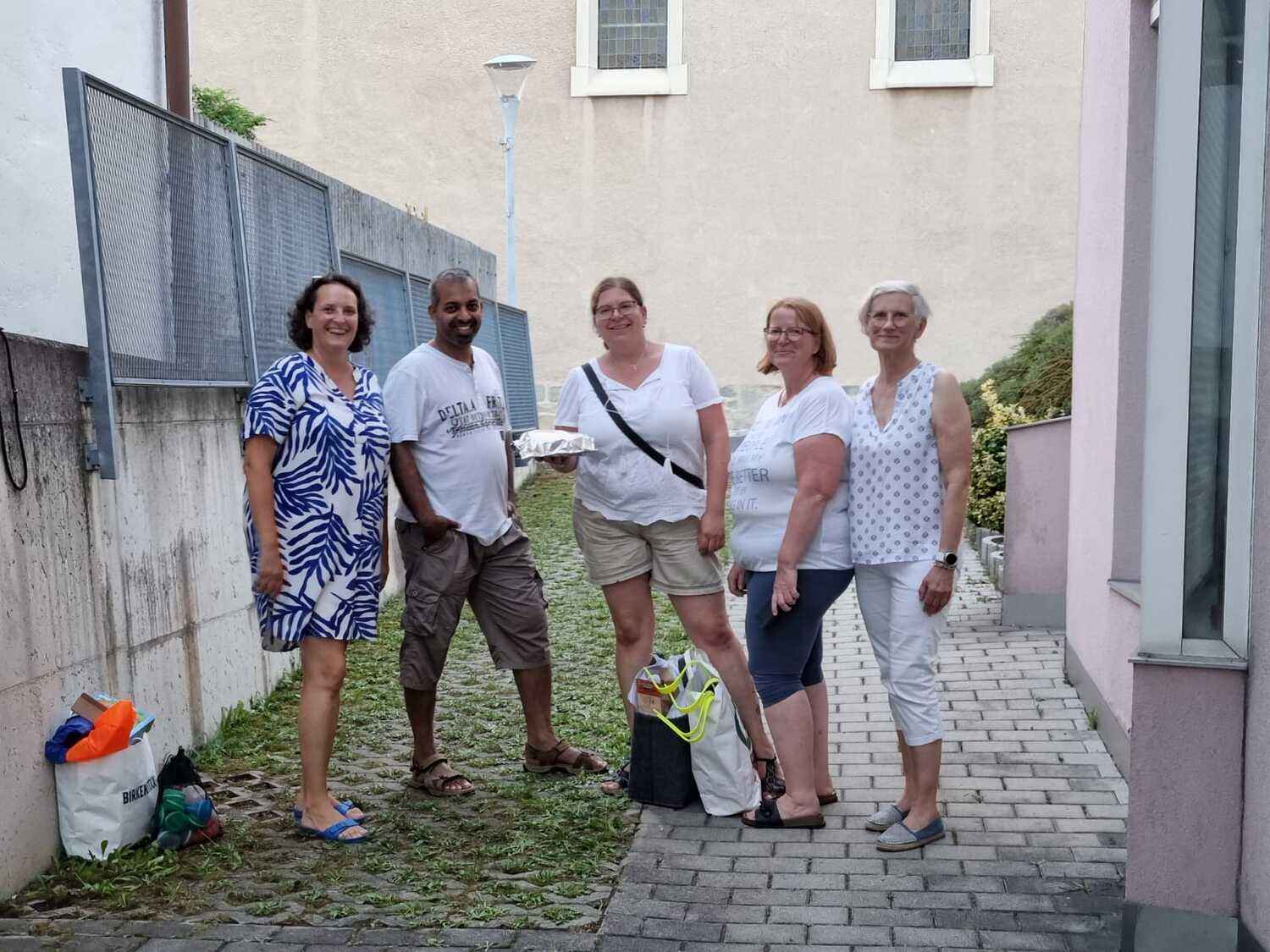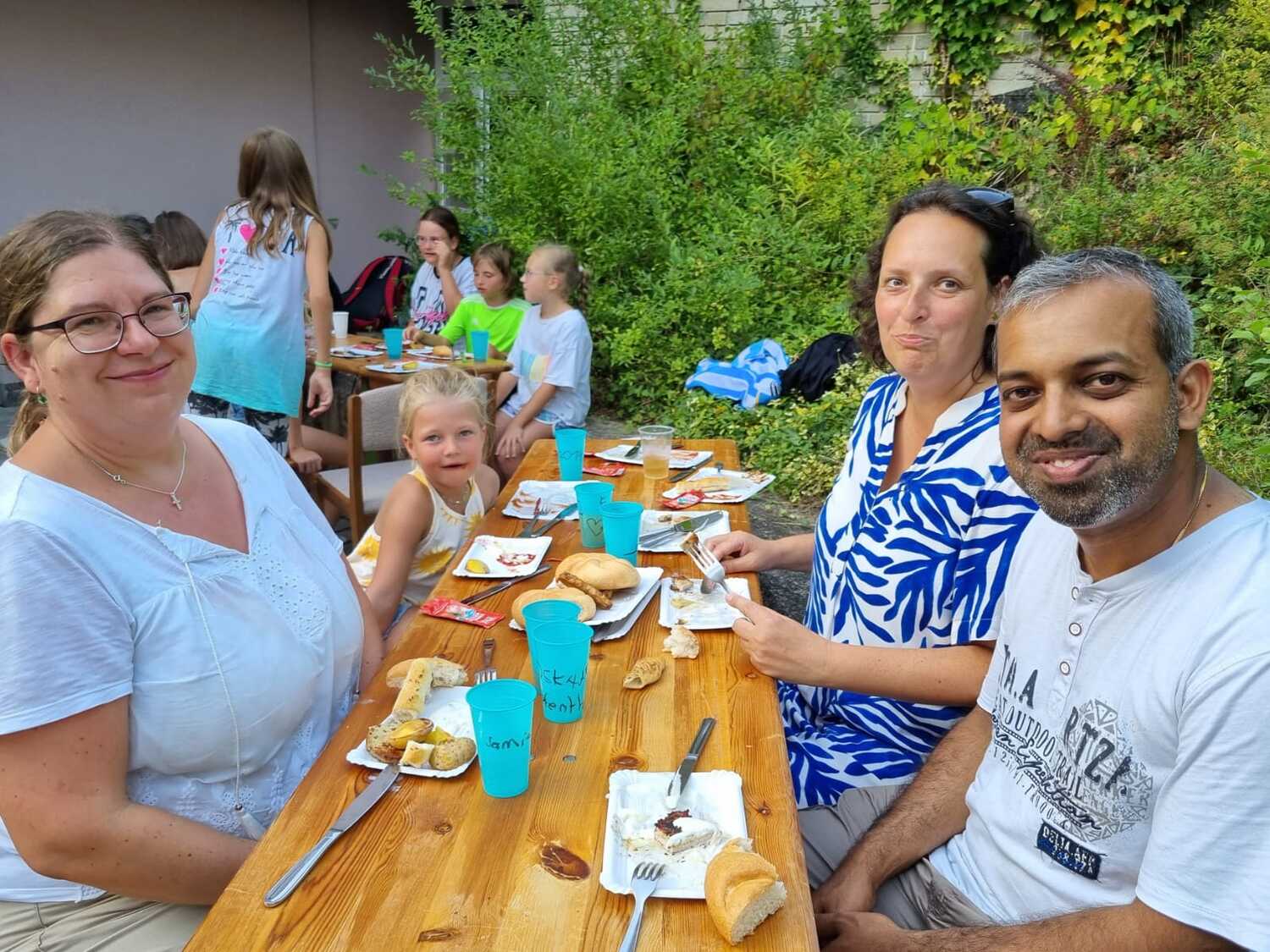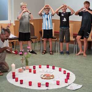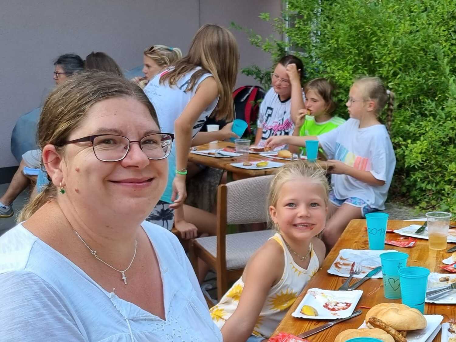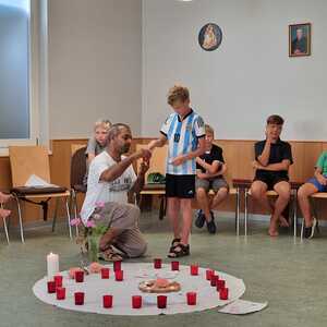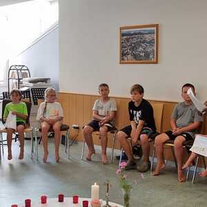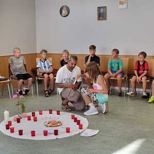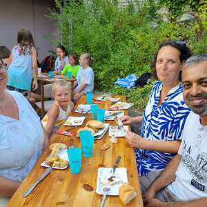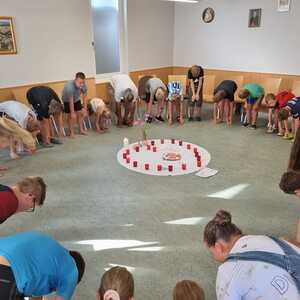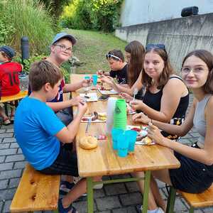 Um 17 Uhr trafen wir uns zu einer gemeinsamen Andacht im Pfarrsaal, wo wir zusammen unser Abendgebet sprachen. Anschließend wurde im Hof gegrillt und wir konnten beim gemeinsamen Abendessen den Tag ausklingen lassen.