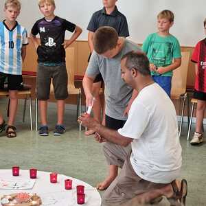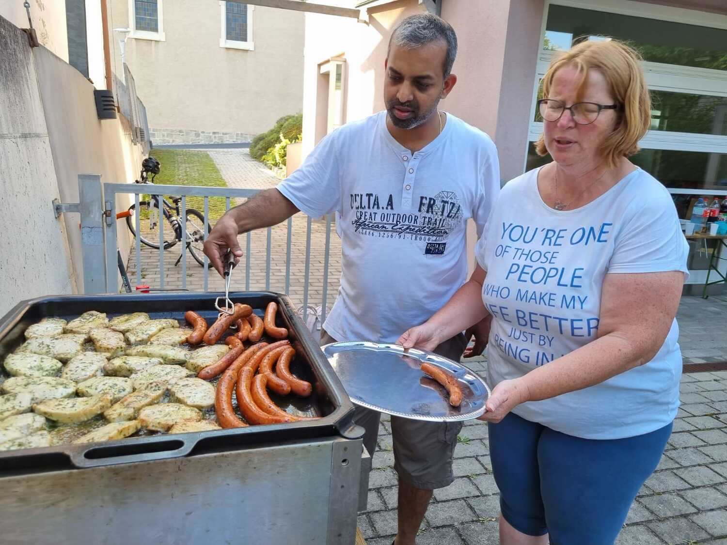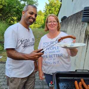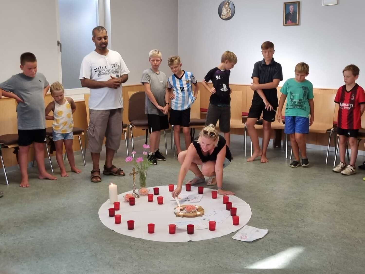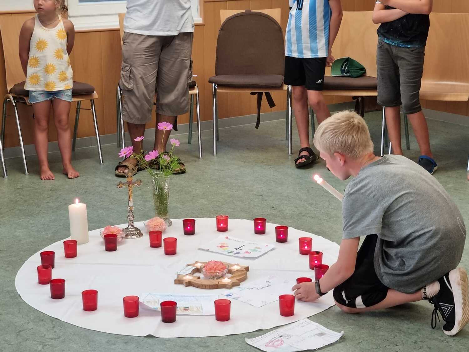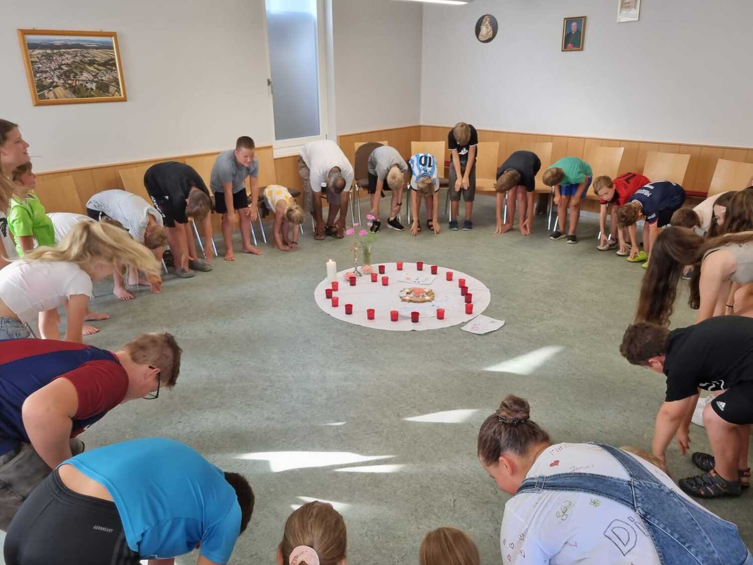 Um 17 Uhr trafen wir uns zu einer gemeinsamen Andacht im Pfarrsaal, wo wir zusammen unser Abendgebet sprachen. Anschließend wurde im Hof gegrillt und wir konnten beim gemeinsamen Abendessen den Tag ausklingen lassen.