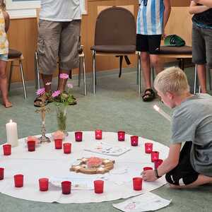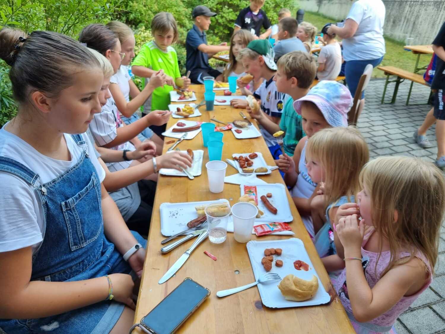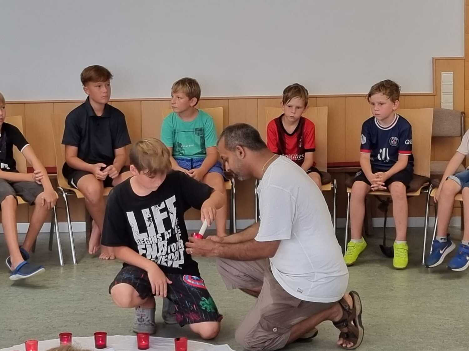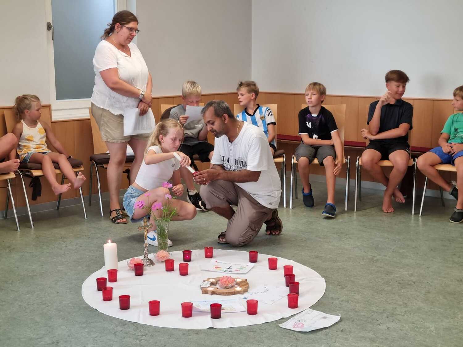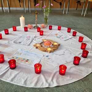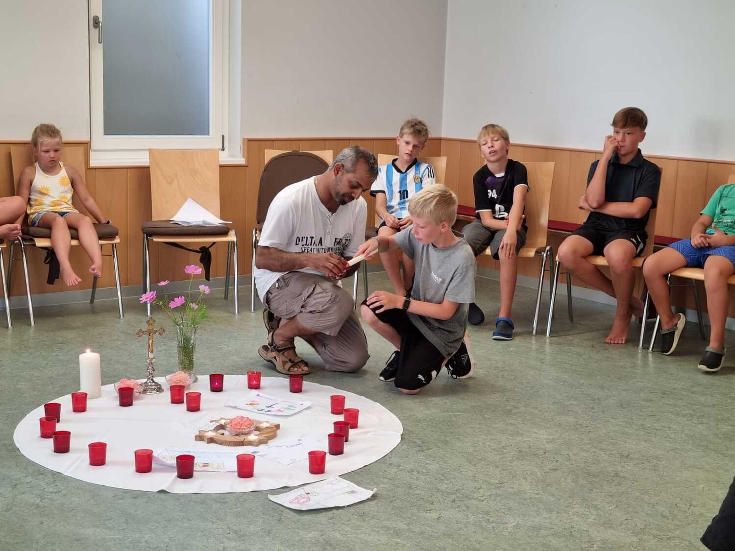 Um 17 Uhr trafen wir uns zu einer gemeinsamen Andacht im Pfarrsaal, wo wir zusammen unser Abendgebet sprachen. Anschließend wurde im Hof gegrillt und wir konnten beim gemeinsamen Abendessen den Tag ausklingen lassen.