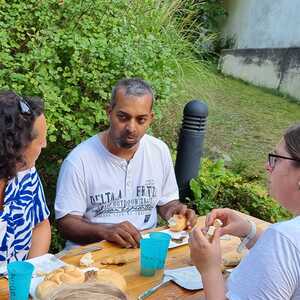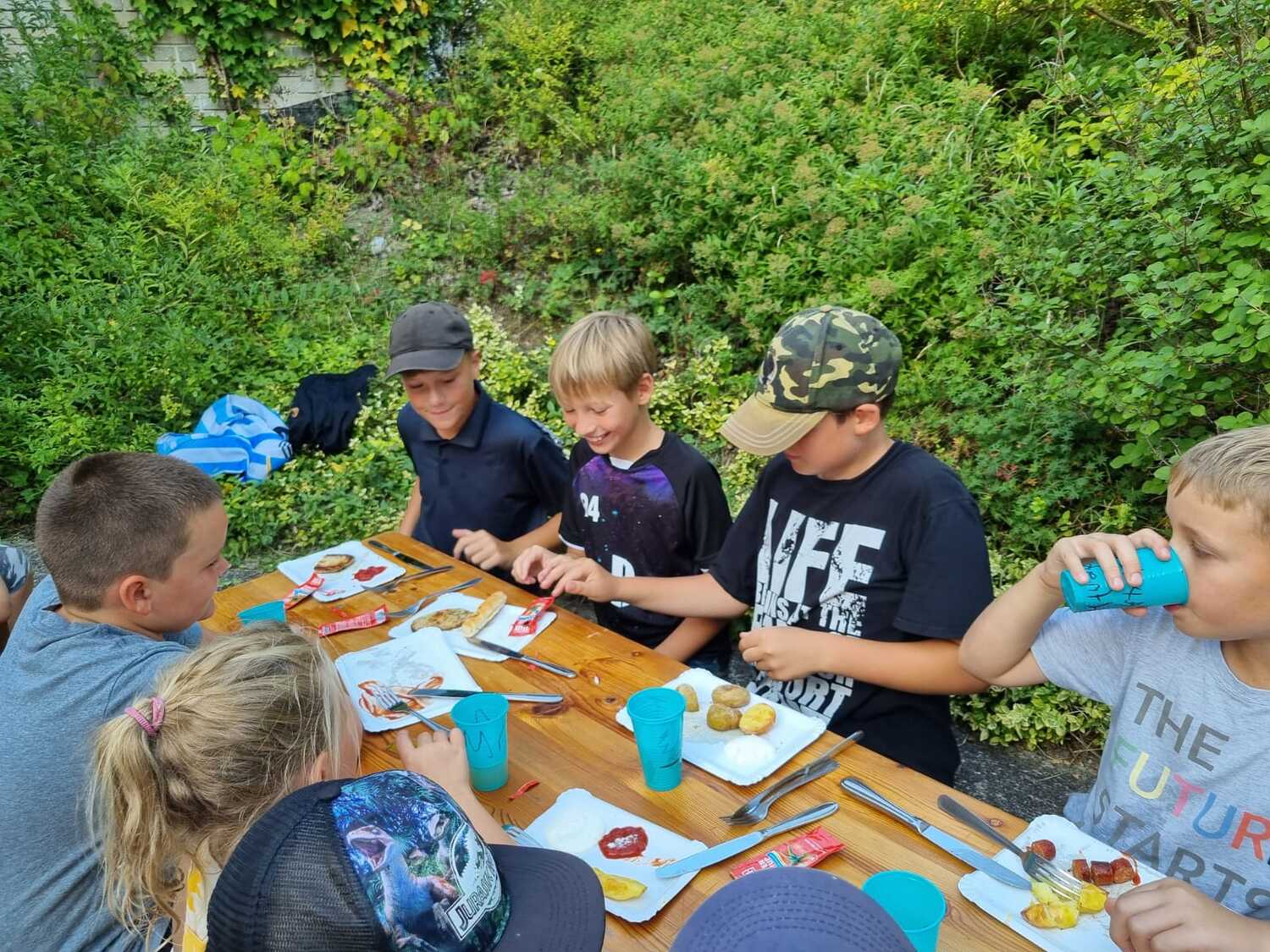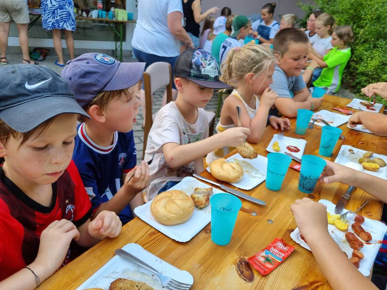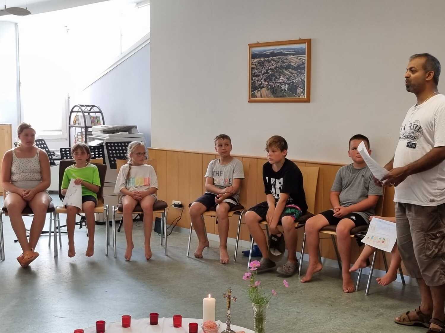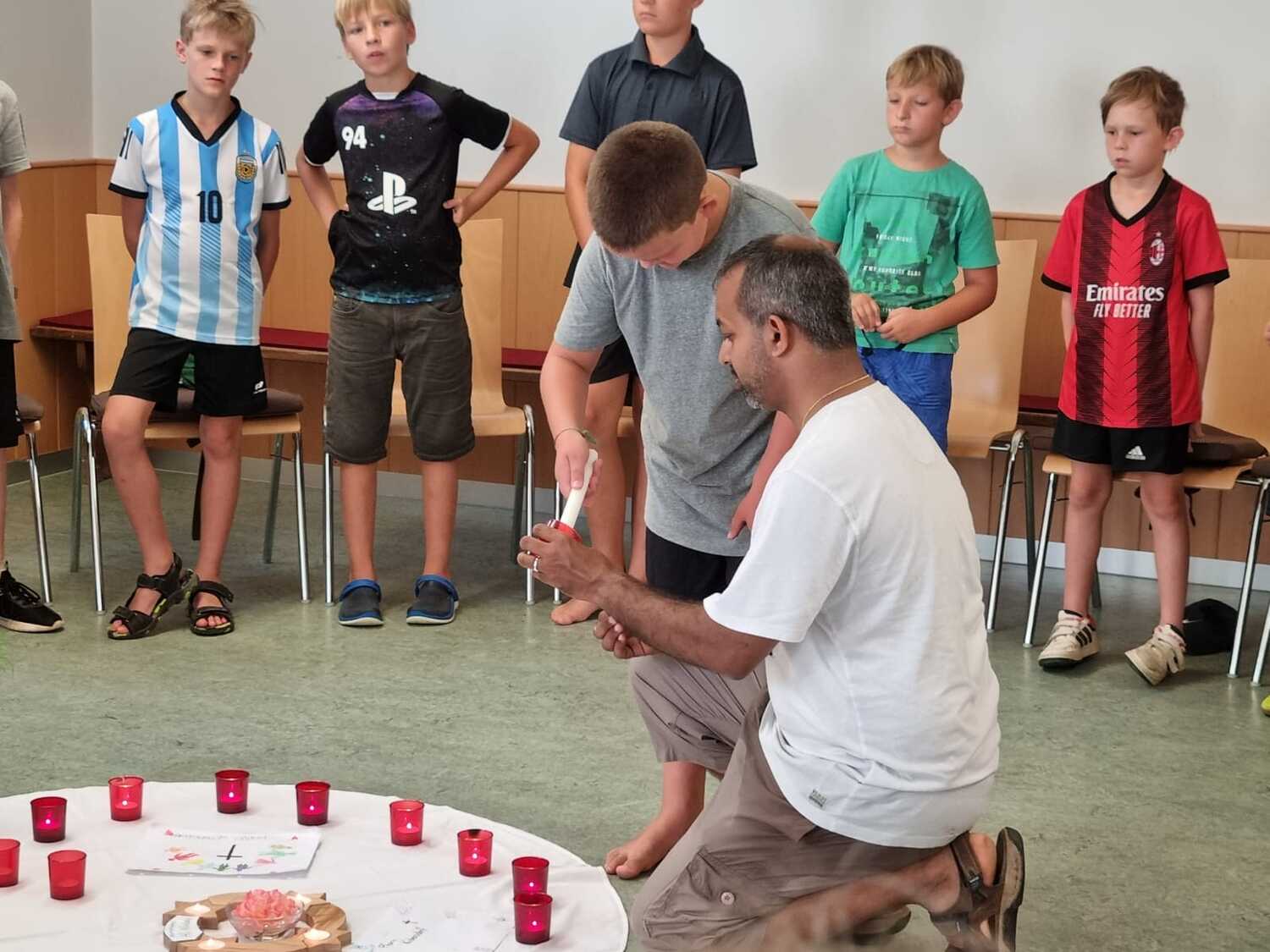Um 17 Uhr trafen wir uns zu einer gemeinsamen Andacht im Pfarrsaal, wo wir zusammen unser Abendgebet sprachen. Anschließend wurde im Hof gegrillt und wir konnten beim gemeinsamen Abendessen den Tag ausklingen lassen.