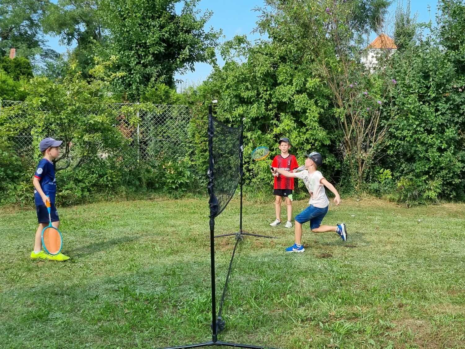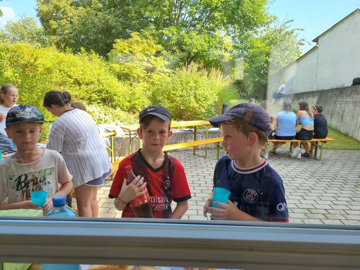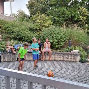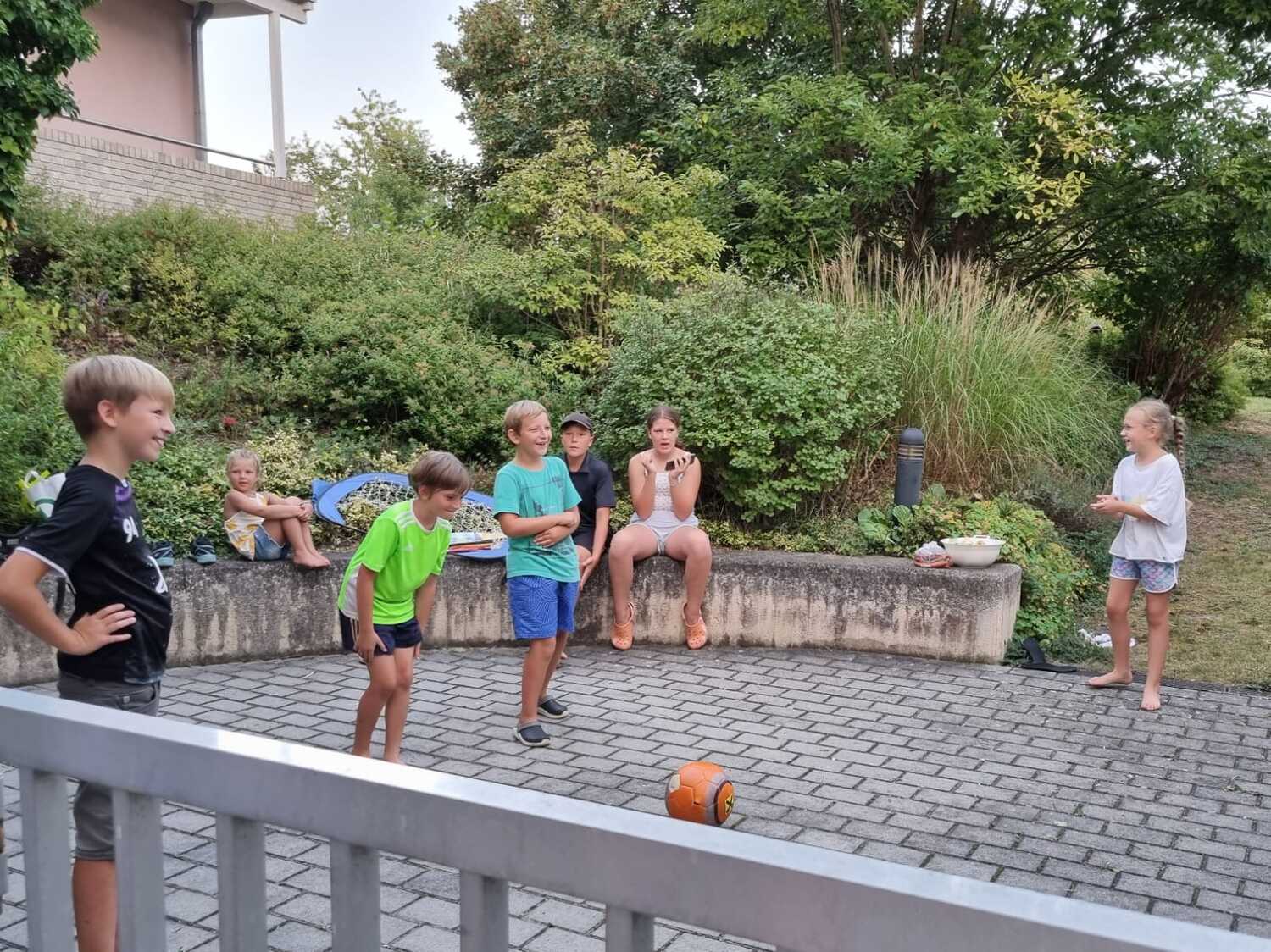Um 15 Uhr versammelten sich alle im Pfarrhof Lackenbach. Nach einer Begrüßungsrunde spielten wir im schattigen Garten. Wir hatten für die Kinder verschiedene Spiele aufgebaut z.B: Sackhüpfen, Dosen werfen, Fußball, Boccia, Federball, Ball über die Schnur, Uno…. . Doch besonders Spaß machte unsere Wasserbombenschlacht, wo niemand trocken blieb –sogar Herrn Pfarrer Shinto haben wir erwischt. J