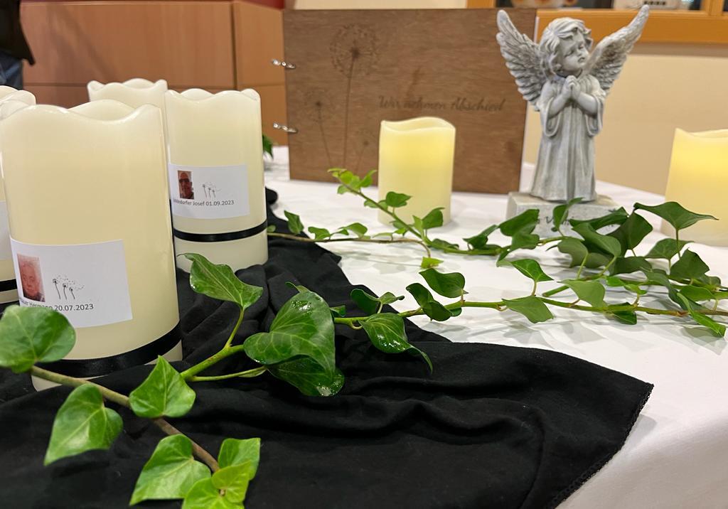 Christus spricht: Ich bin das Licht der Welt. Wer mir nachfolgt, der wird nicht wandeln in der Finsternis, sondern wird das Licht des Lebens haben. Daran erinnern uns die Kerzen, und wir vertrauen darauf, dass unsere lieben Verstorbenen im Licht und in der Geborgenheit Gottes zuhause sind.