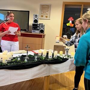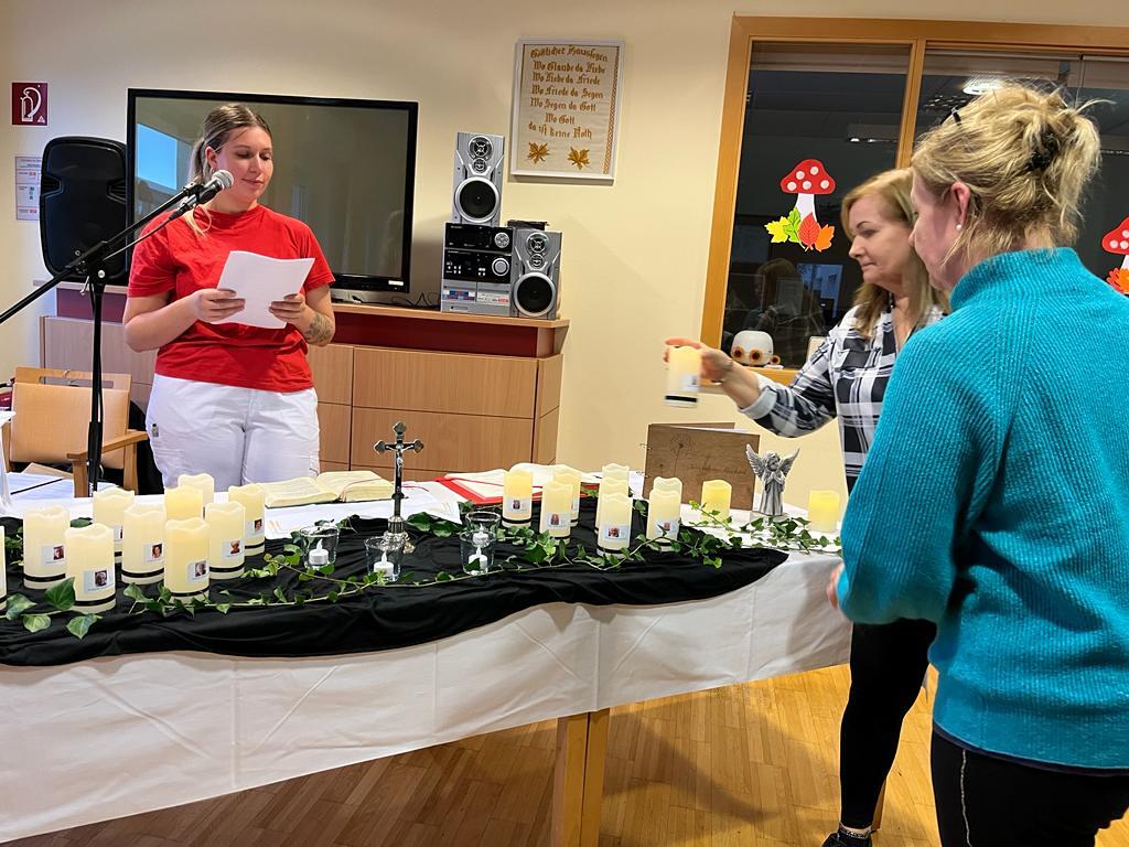 Am Freitag, dem 3. November fand im Pflegekompetenzzentrum Lackenbach ein Gedenkgottesdienst für die Bewohner, die im letzten Jahr verstorben sind, statt. Liebevoll hat das Pflegepersonal Kerzen mit den Bildern der Verstorbenen vorbereitet, die die Angehörigen dann mit nach Hause nehmen durften.