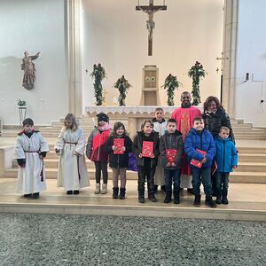 „ In einem Boot – mit Jesus“ so lautet das diesjährige Motto unserer sechs Erstkommunionkinder, die sich am dritten Adventsonntag vorgestellt haben. Mit wie viel Begeisterung die Kinder den Gottesdienst mitgestalteten, davon konnten sich die Messbesucher/innen der vollbesetzten Kirche selbst überzeugen.