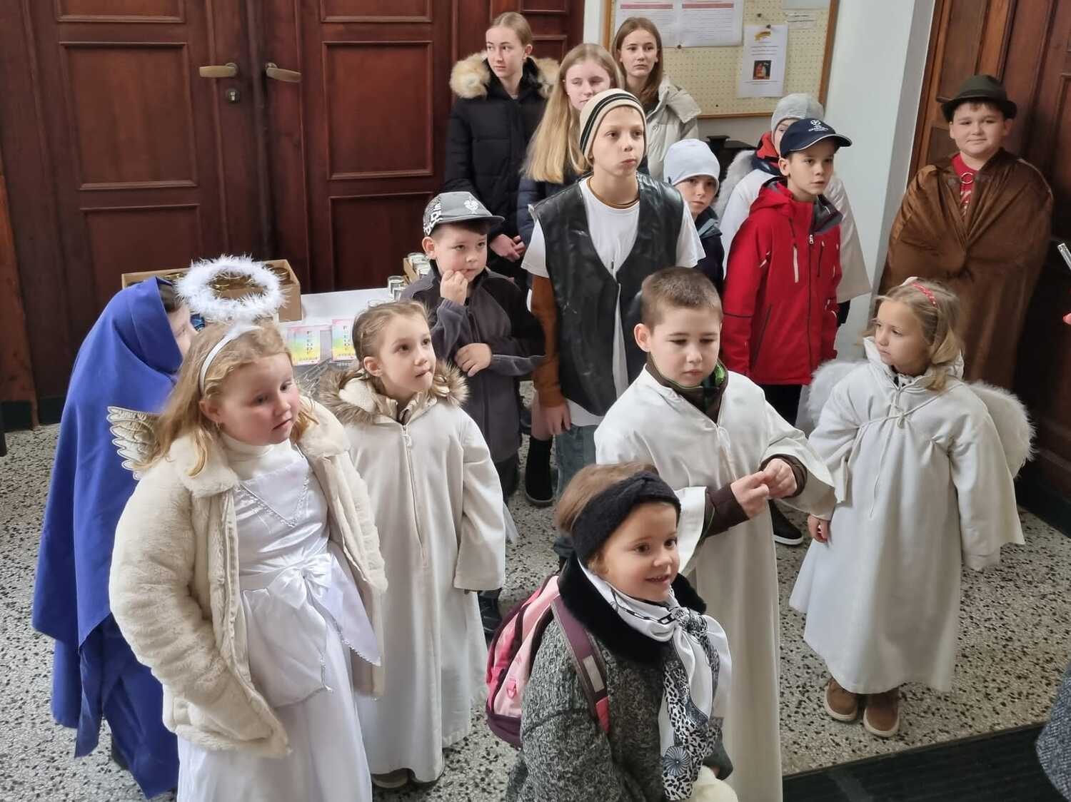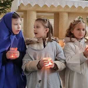 Gemeinsam mit Marie Bauer haben sich die Kindergartenkinder, Volksschulkinder, Kommunionkinder, Firmlinge und Ministrantenkinder Gedanken über Weihnachten gemacht und mit einem Krippenspiel, welches von den ursprünglichen Ereignissen vor über 2000 Jahren in die heutige Zeit reicht.