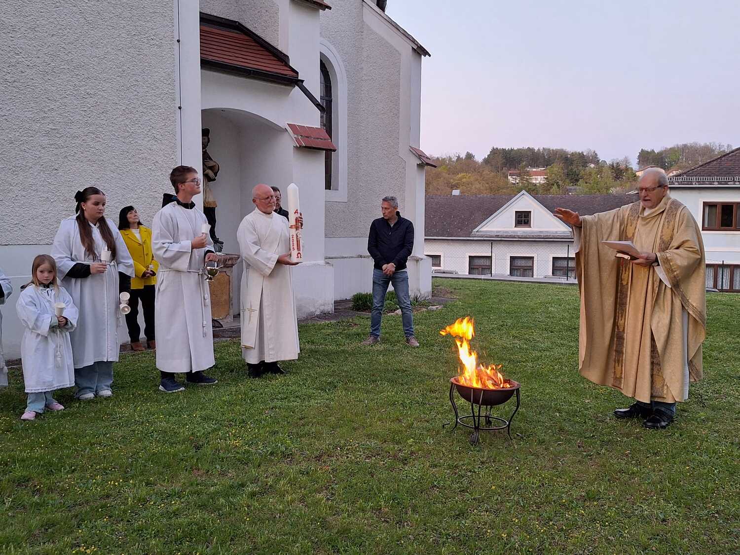 In der Osternacht bricht die Stille durch den erlösenden Ruf, dass Christus als das Licht der Welt immer gegenwärtig ist. Der Stein am Eingang des Grabes ist weg, das Grab ist leer – ER LEBT!