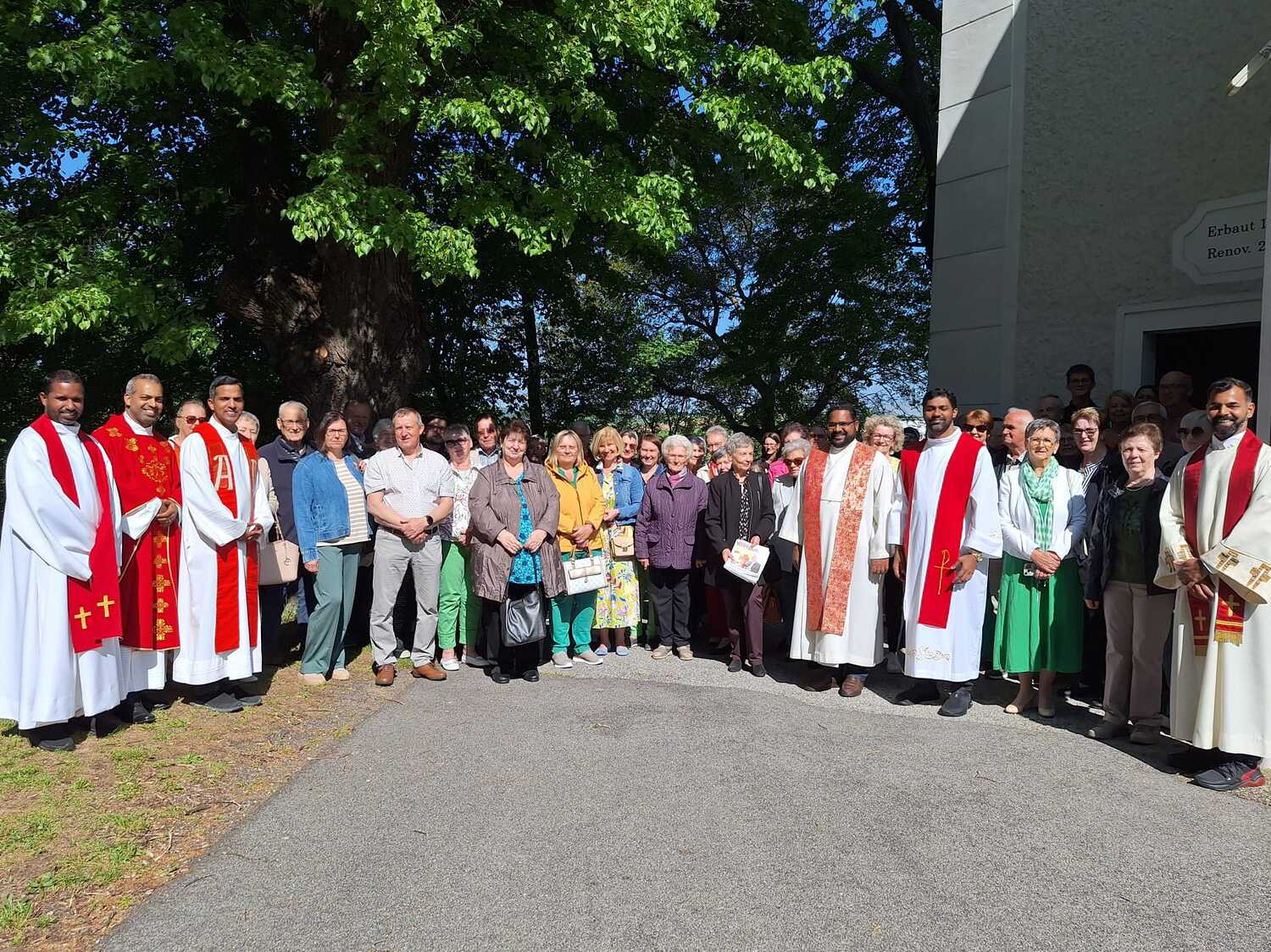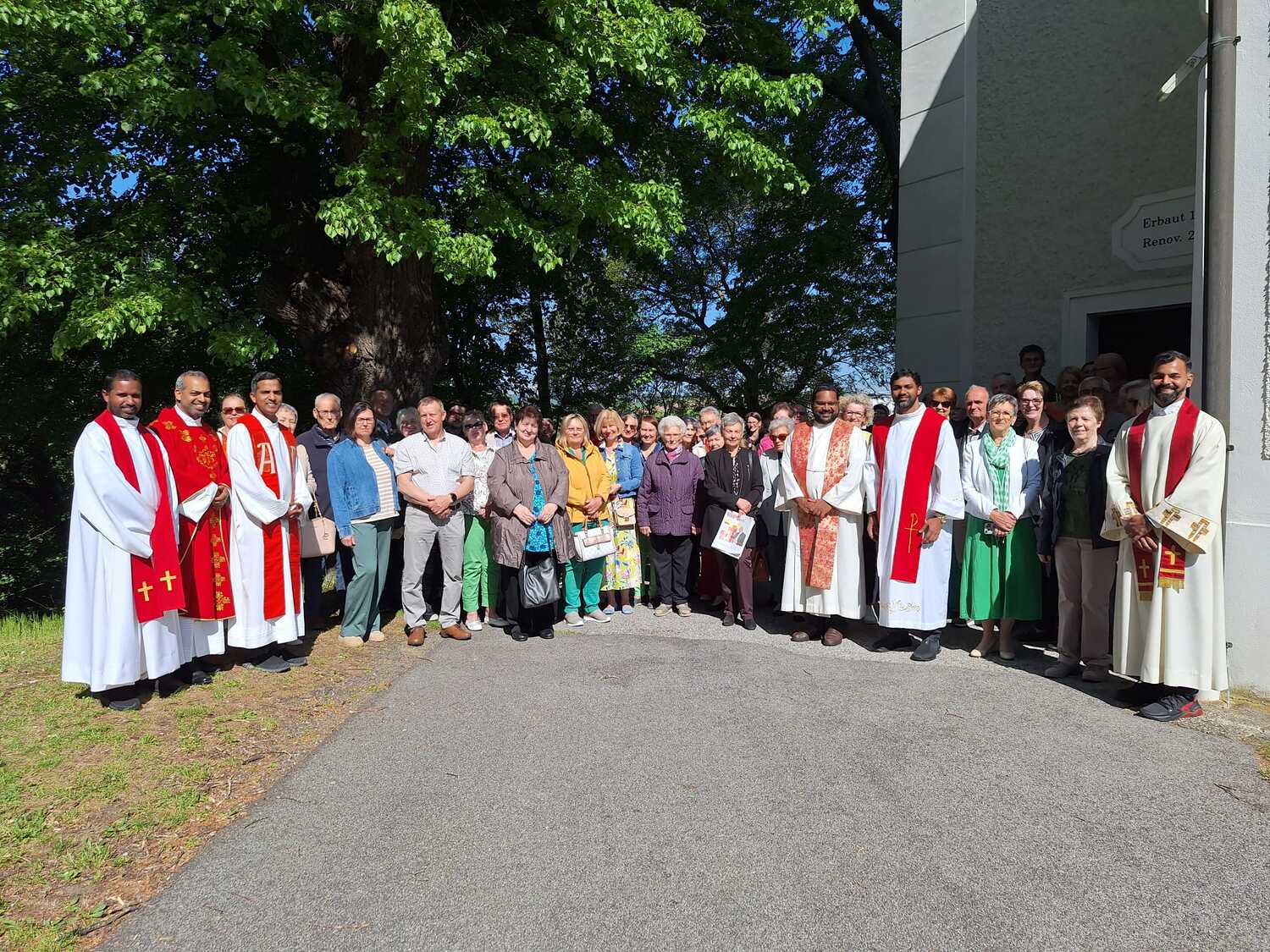 Nach dem Trauergottesdienst gab es noch herzliche Begegnungen mit den indischen Gästen am Kirchenplatz.