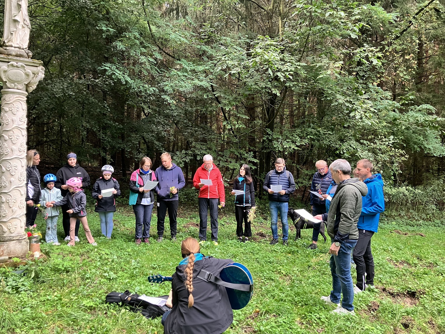Auf dem Rückweg legten wir einen spirituellen Stopp bei der Mariensäule in Markt St. Martin ein, wo wir eine stimmungsvolle Andacht feierten.