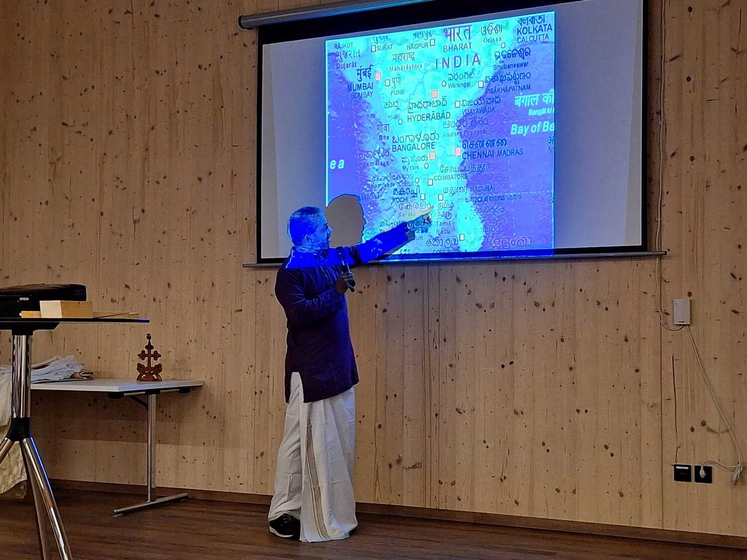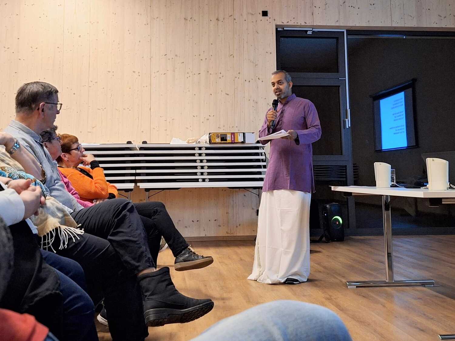 Besonders wertvoll waren die vielen persönlichen Erzählungen, mit denen Pfarrer Varghese seine Ausführungen lebendig und greifbar machte. Im Anschluss nahm er sich ausführlich Zeit, die zahlreichen Fragen aus dem Publikum zu beantworten – ein Austausch, der von großem Interesse und gegenseitiger Wertschätzung geprägt war.