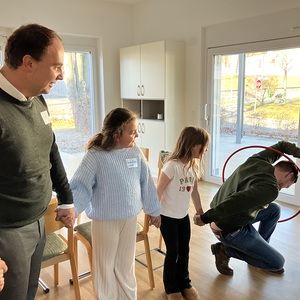 So wurden in verschiedenen Kreisspielen Themen wie gemeinsame Interessen, Hobbys aber auch Teamwork in den Vordergrund gestellt. Eine besondere Herausforderung war der “Eier-Flyer”, bei dem es das Ziel war mit Hilfe von Papier, Schere, Klebeband und Strohhalmen ein rohes Ei so zu präparieren, dass es bei einem Sturz aus ca. 3 Metern Höhe nicht kaputt ging.