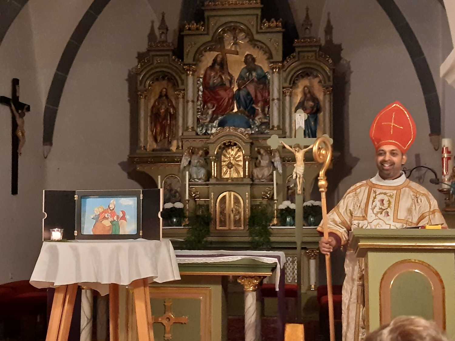 Nach einem gemeinsamen Gebet verteilte der Nikolaus dann an die anwesenden Kinder Geschenke. Mit dem Segen durch Pfarrer Shinto endete die sehr gut organisierte Feier – ein herzliches Vergelt`s Gott an Katja, die die gesamte Feier koordiniert hat.