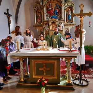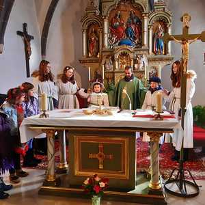 Viele Kinder und auch einige Erwachsenen kamen in ihren lustigen Kostümen um gemeinsam Eucharistie zu feiern. Unser Herr Pfarrer Shinto, der als „Steirerbua“ in Lederhose zum Gottesdienst kam, erzählte uns anstatt der Predigt die Legende vom betenden Gaukler, der er uns gezeigt hat, wie er sein Herz in sein Gebet legte. Seine Art Gott zu loben, danken und ehren sollte für uns alle ein Beispiel sein.