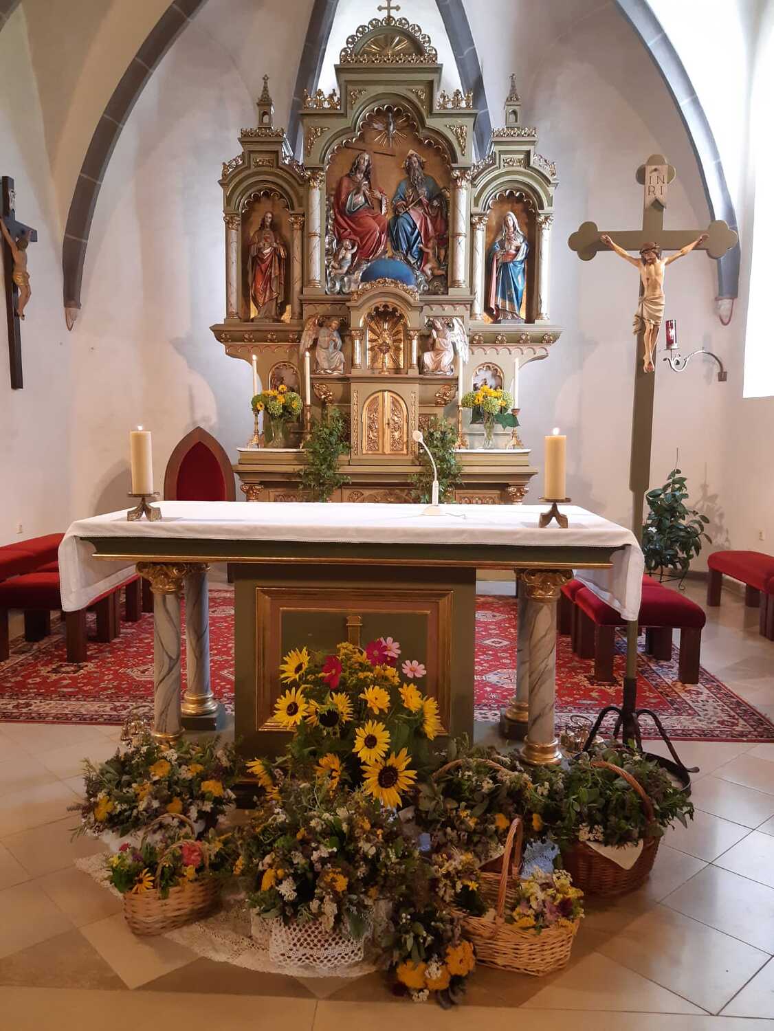 Segne + diese Kräuter und Blumen. Sie erinnern uns an deine Herrlichkeit und an den Reichtum deines Lebens. Schenke uns auf die Fürsprache Mariens dein Heil. Lass uns zur ewigen Gemeinschaft mit dir gelangen und dereinst einstimmen in das Lob der ganzen Schöpfung, die dich preist durch deinen Sohn Jesus Christus in alle Ewigkeit. Amen.