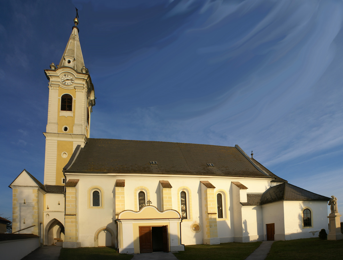 Errichtet vor 1500, Matriken 1696; Pfarrkirche: zum hl. Andreas, erbaut im 16. Jh., renov. 1950, konsekr. - Kapellen: zum Hl. Kreuz, erbaut 1759, zu Maria Hilf, erbaut 1875, zum hl. Florian, erbaut 1858, zu Maria Lourdes, erbaut 1896, zum hl. Johannes Nepomuk, erbaut 1926, zum hl. Johannes Nepomuk, erbaut 1955