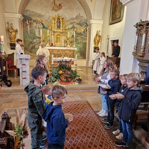 Aus Dankbarkeit feierten wir wieder das Erntedankfest. Pfarrer Gregor erzählte von den Sonnenblumen. Die Kinder und Sänger/innen gestalteten die Eucharistiefeier mit. Anschließend fand die Agape diesmal bei kühlem Wetter im Pfarrhof statt.