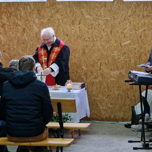 Beim Blumauer Kirtag stürmte und regnete es heftig. Einige Messbesucher trotzten dem Wetter und fanden sich im naheliegenden Stadel zur Feier der Hl. Messe mit Pfarrer Renner ein. Nach der Messfeier luden die Blumauer/innen traditionell zur Agape ein.