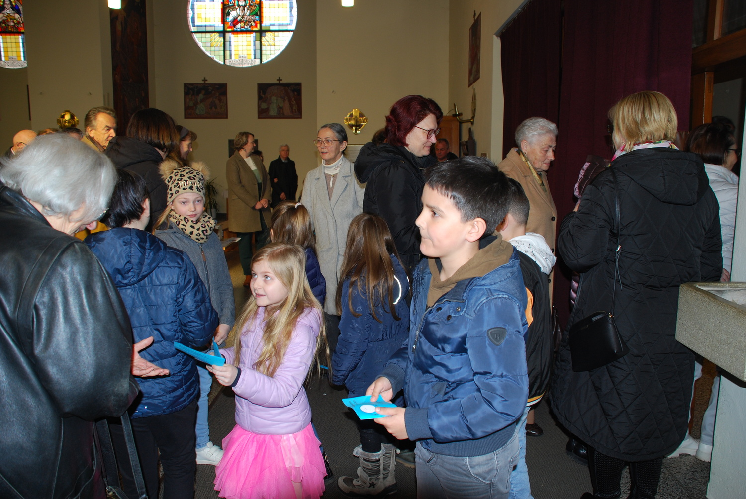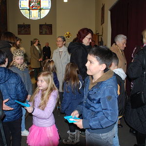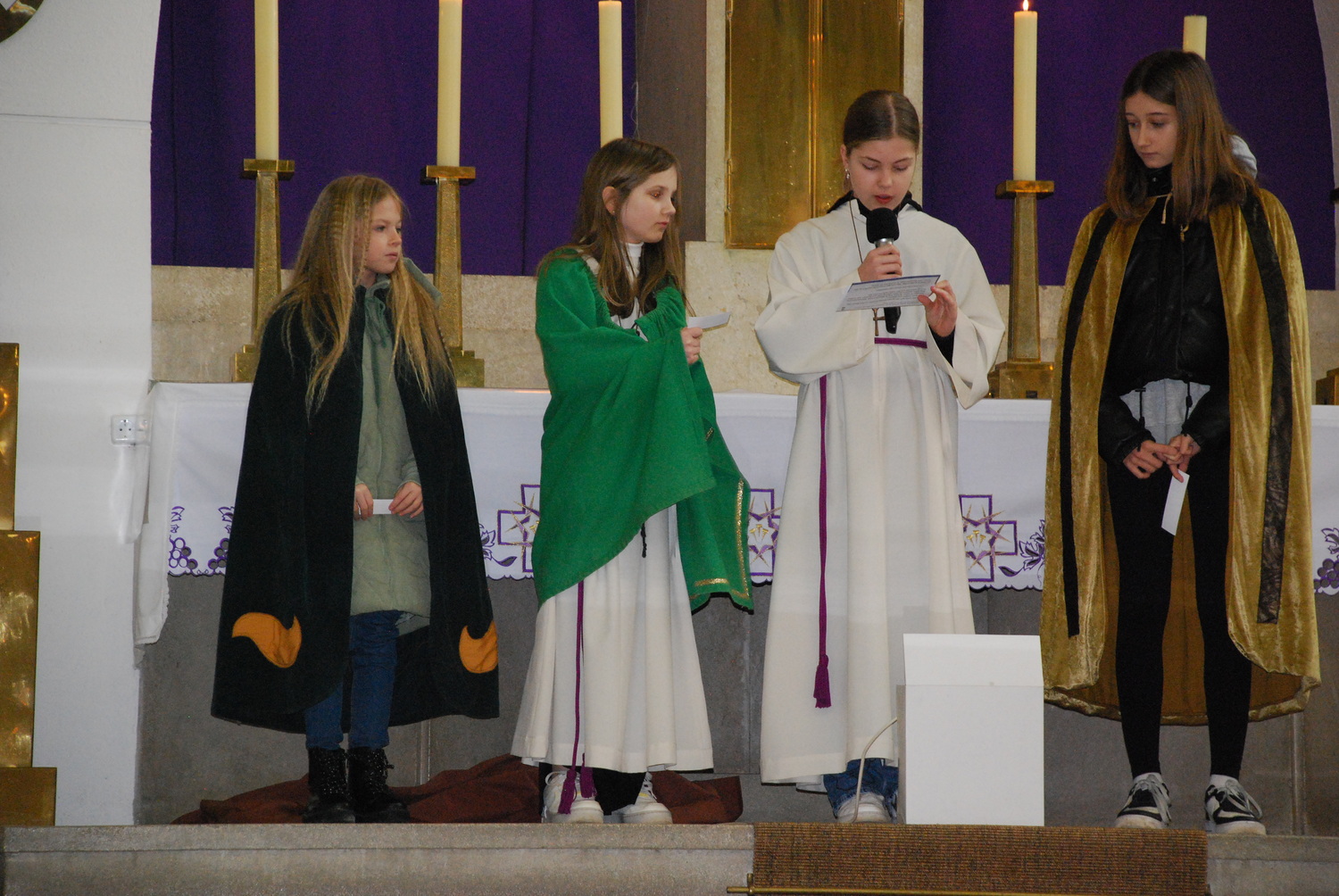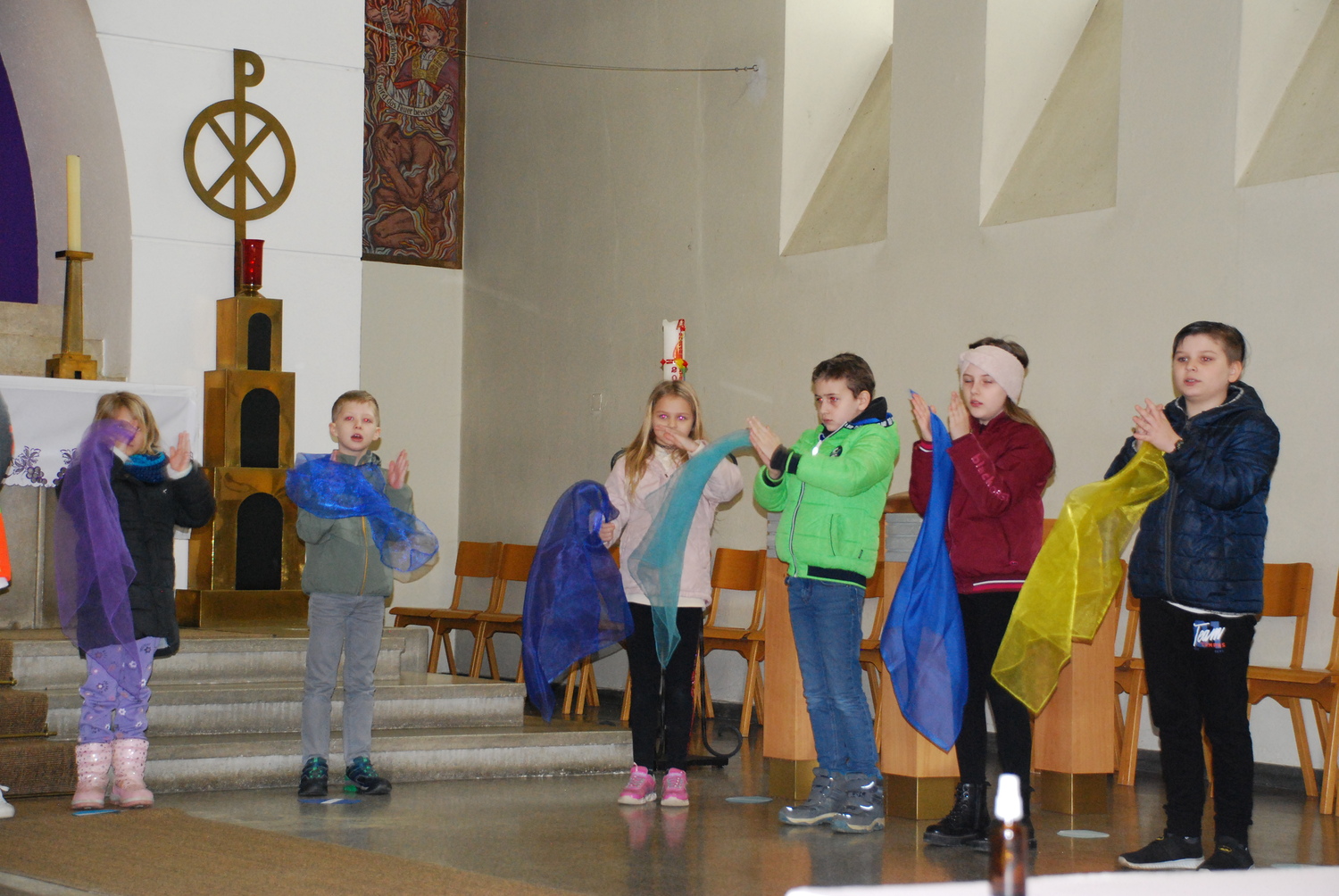 14 Kinder machten sich im Gottesdienst Ende Feber auf den Weg zu Jesus, der Quelle des Lebens. In den Texten erinnerten sie die Gläubigen, welche guten Gaben – etwa Frieden, Freude, Hoffnung - aus der Quelle Gottes sprudeln. Die passenden Lieder begleitete die Musikgruppe Arabesque. Geschwister der Erstkommunionkinder verkündeten mit Pater Deiva in einem Spiel das Evangelium von der Verklärung Jesu am Berg Tabor. Die Eltern lasen Fürbitten, Lesung und ein gemeinsames Segensgebet, das die Kinder auch an die Gottesdienstbesucher verteilten. Bravo Kinder! Hoffentlich werden ihr noch öfter Messen in unserer Kirche mitgestalten