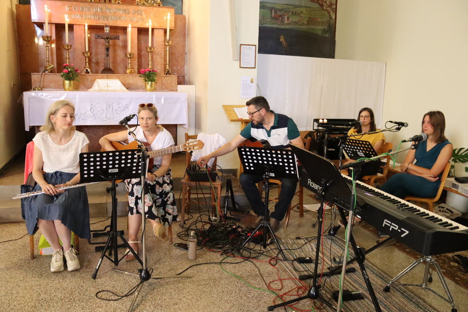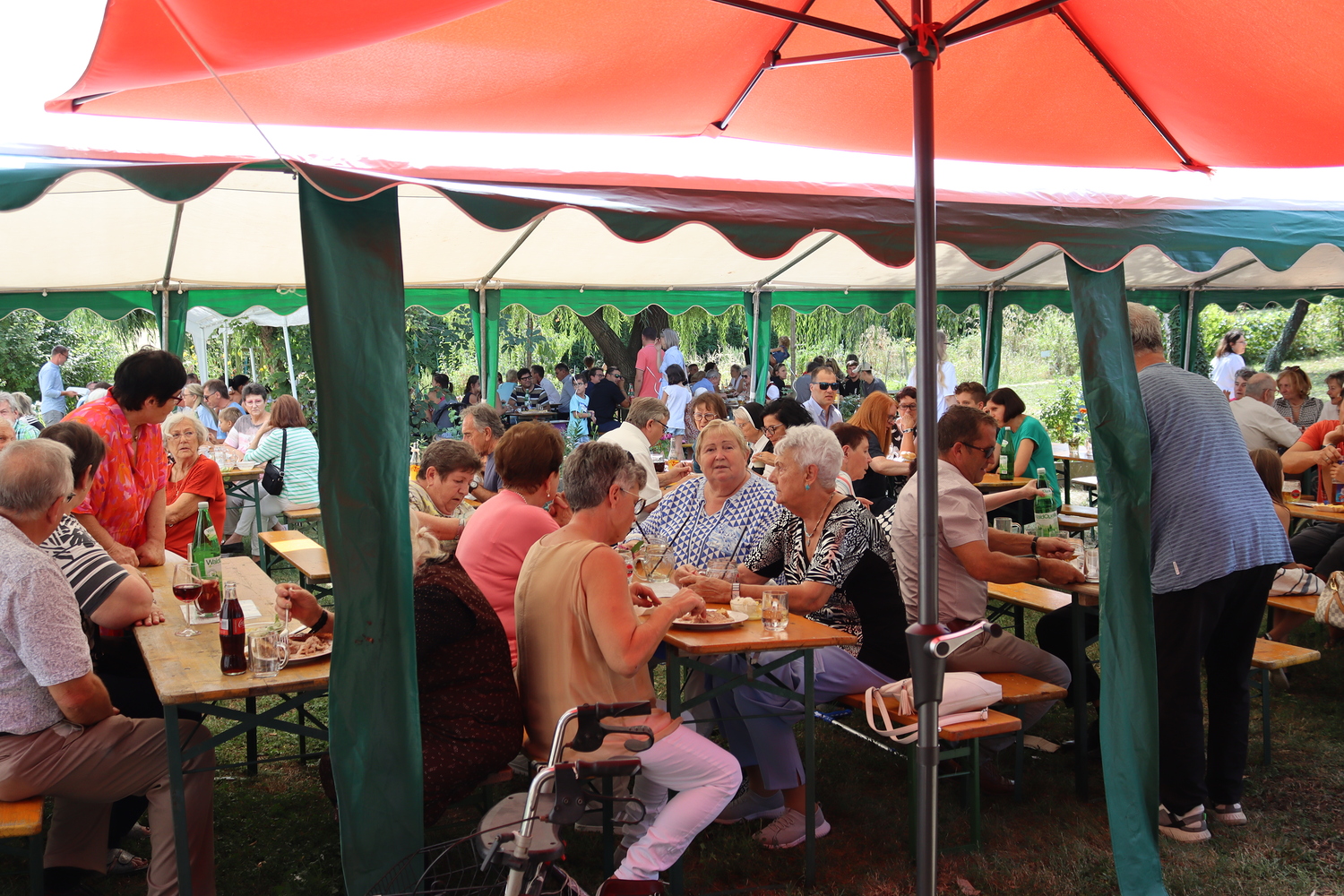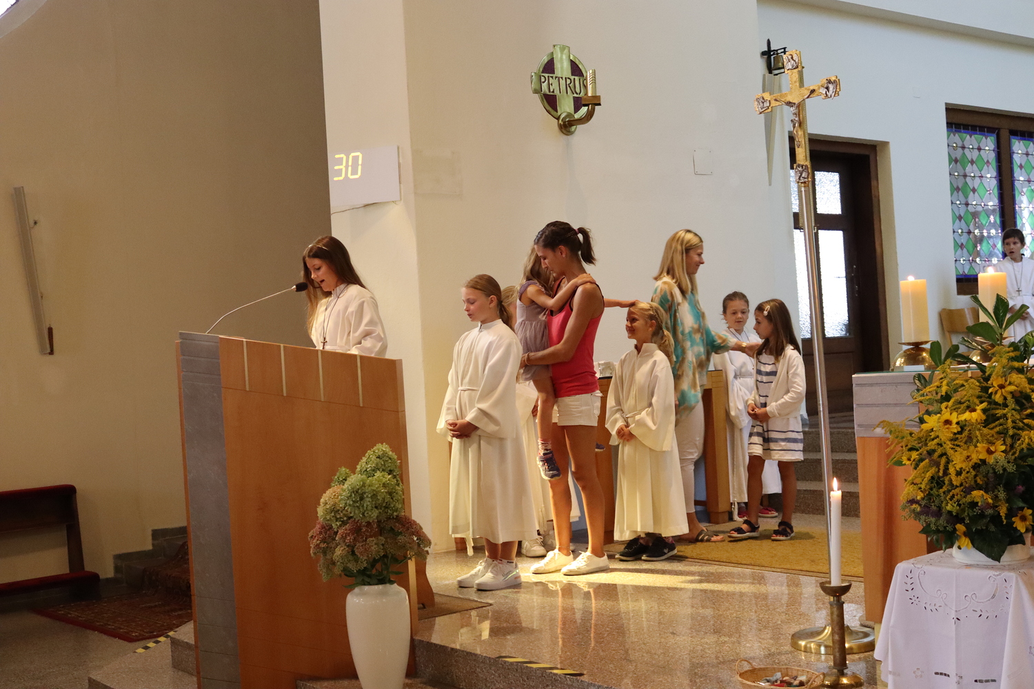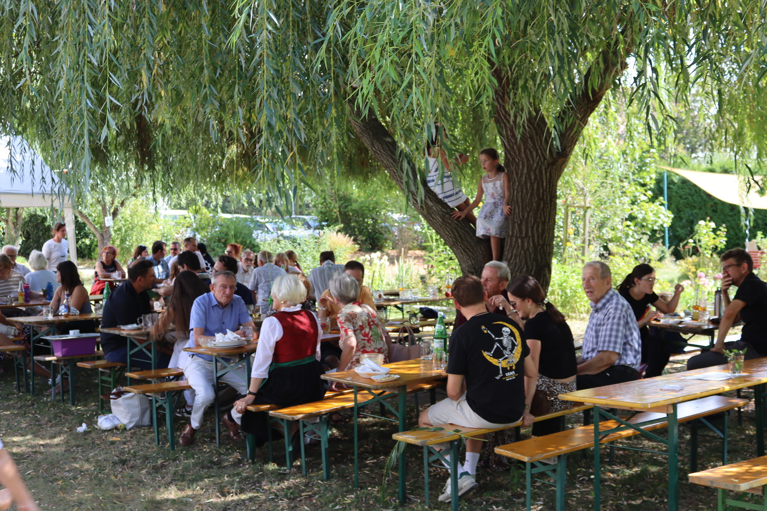 Am letzten heißen und sonnigen Sommersonntag feierte die Pfarrfamilie ihr Pfarrfest mit allem was dazu gehört: Begonnen wurde mit einer  stimmigen Familienmesse mit schwungvoller Musik und vielen Kindern, die mitgestaltet haben, zu Mittag gab es reichlich Essen für die unterschiedlichen Geschmäcker und am Nachmittag Süßes beim Mehlspeisstandl oder kühles Spritziges beim Weinstand.