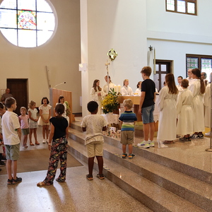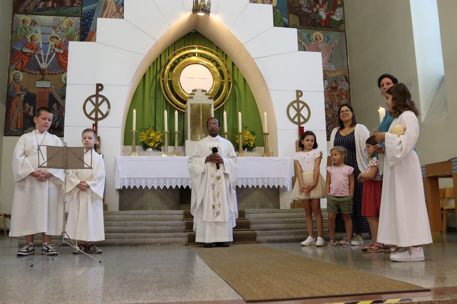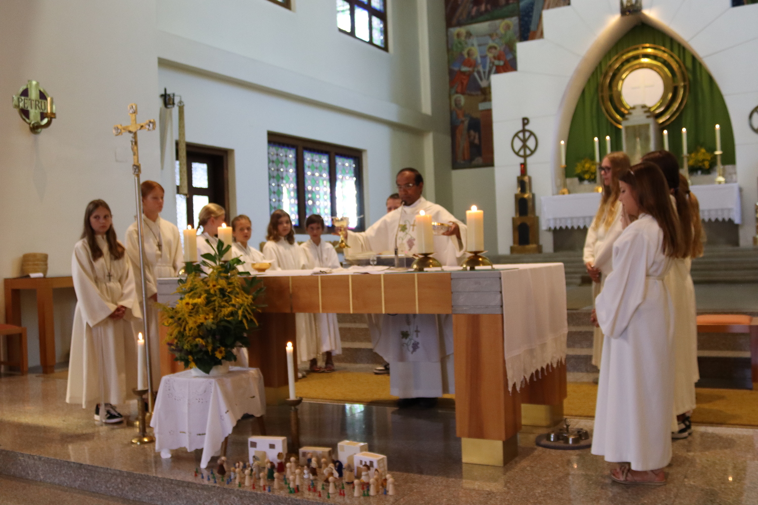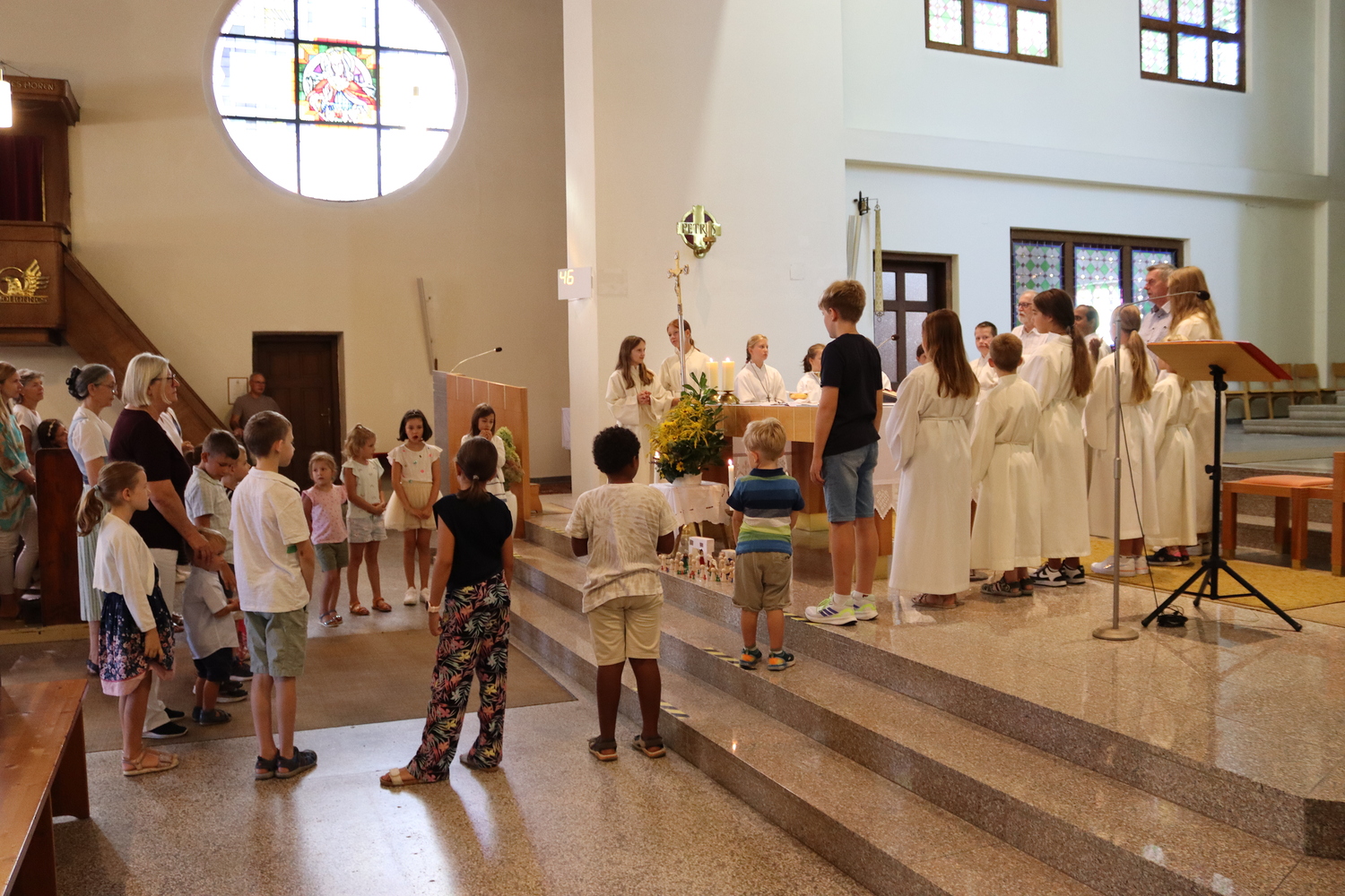 Am letzten heißen und sonnigen Sommersonntag feierte die Pfarrfamilie ihr Pfarrfest mit allem was dazu gehört: Begonnen wurde mit einer  stimmigen Familienmesse mit schwungvoller Musik und vielen Kindern, die mitgestaltet haben, zu Mittag gab es reichlich Essen für die unterschiedlichen Geschmäcker und am Nachmittag Süßes beim Mehlspeisstandl oder kühles Spritziges beim Weinstand.