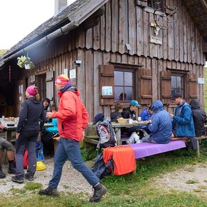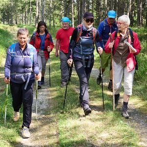 Treffpunkt bei der Pfarrkirche Oberpullendorf, Transfer nach Redlschlag, über den Hutwisch, den Zentralalpenweg 02 nach Mönichkirchen auf die StoaAlm bei der Bergstation Mariensee