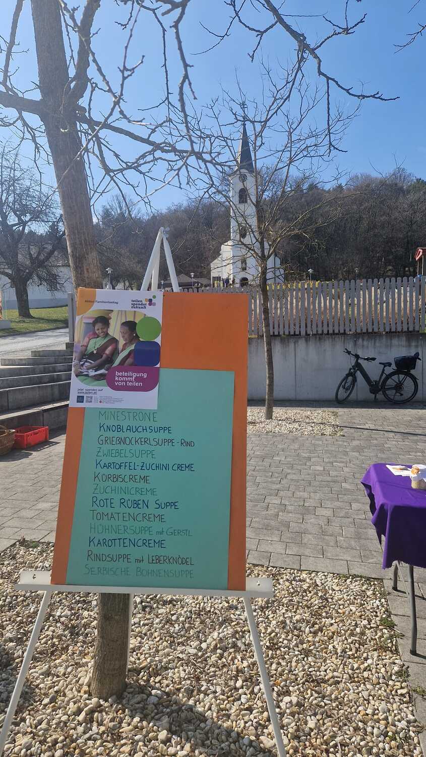 Unter diesem Motto fand die heurige „Aktion Fastensuppe“ der Katholischen Frauenbewegung statt. Auch wir in der Pfarre Jabing haben uns wieder an dieser Aktion beteiligt. Mit Liebe und Engagement wurden am Sonntag 15.März am Hauptplatz verschiedene köstliche Suppenvarianten im Glas angeboten. Aufgrund der großen Nachfrage waren die Suppen schon vor dem Ende der angegebenen Ausgabezeit weg. Ein erfreuliches Zeichen, wenn viele Menschen diese Aktion unterstützen.