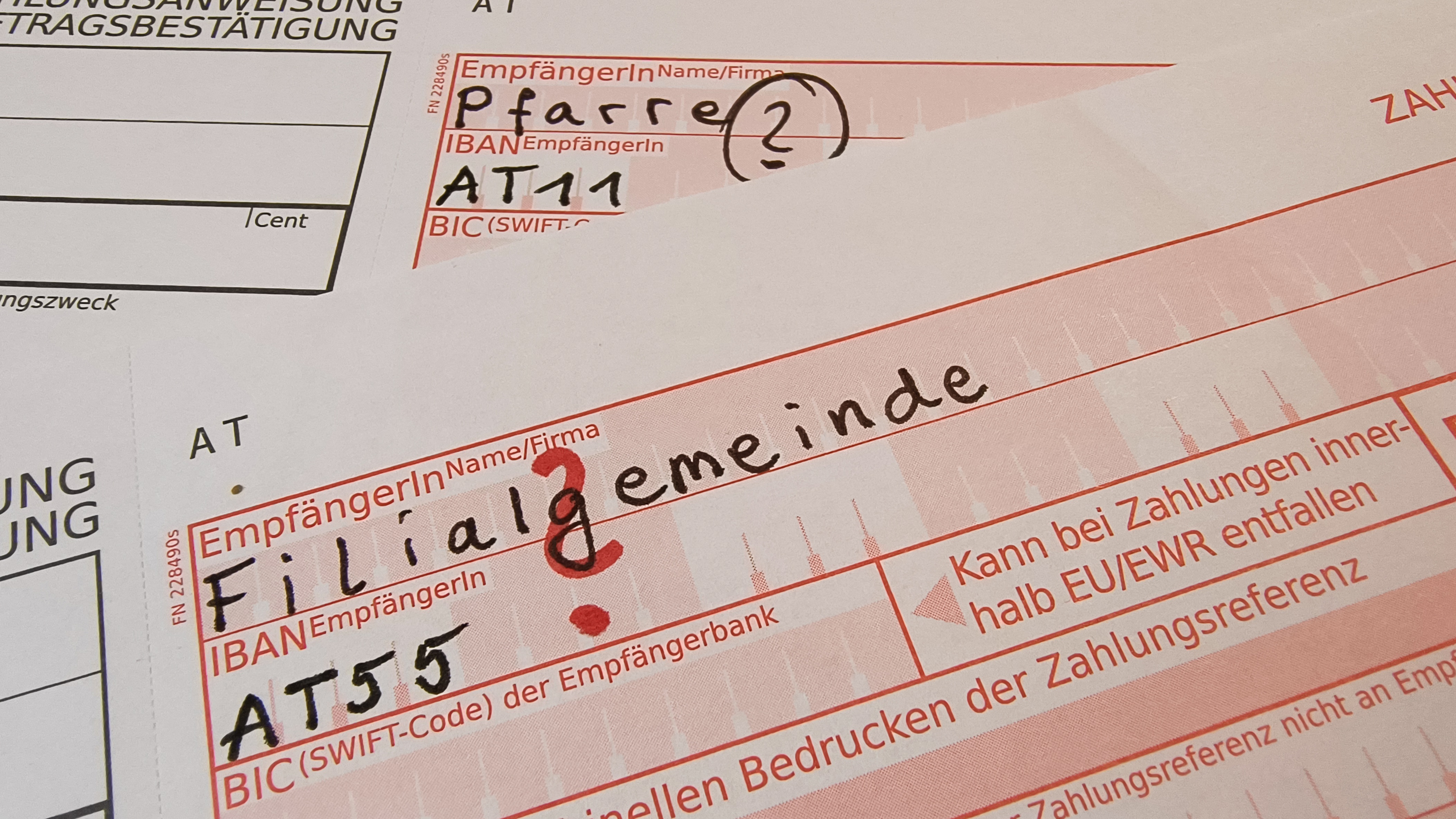 Bitte beachten Sie, dass auch die Konten der Filialgemeinden ihre Kontobezeichnung entsprechend der jeweiligen Pfarre führen. Der pfarrliche Wirtschaftsrat trägt die Verantwortung über alle Konten einer Pfarre, wobei jede Filiale auch durch zeichnungsberechtigte Mitglieder vertreten ist. Tobaj und Punitz führen ein gemeinsames Konto, darum ist zur korrekten internen Zuordnung im Verwendungszweck die bedachte Kirche zu nennen.