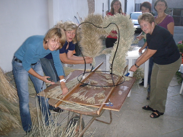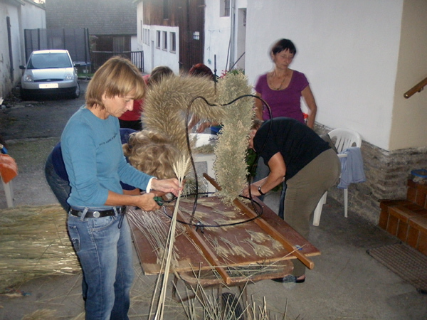 Als Vorbereitung für das Erntedankfest wurde von unseren Damen, "den fleissigen Händen", die Erntekrone angefertigt.