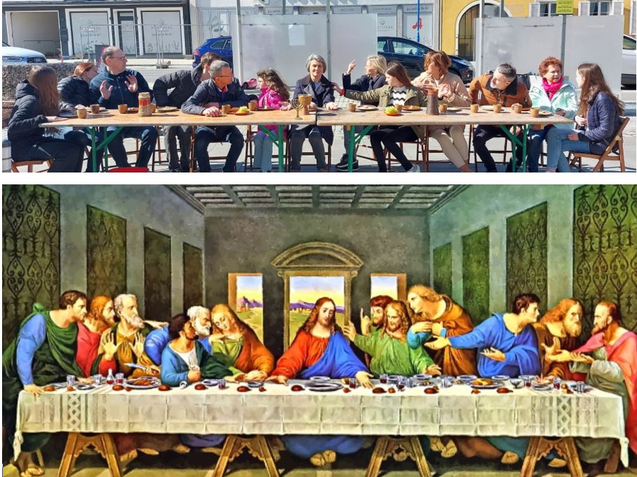 Mit 5 Vorstellungen an diesem Tag, an verschiedenen öffentlichen Orten in Stegersbach, wurde der Gründonnerstag, sprich das Letzte Abendmahl, der Bevölkerung dargeboten und den Menschen visuell wieder in Erinnerung gebracht.