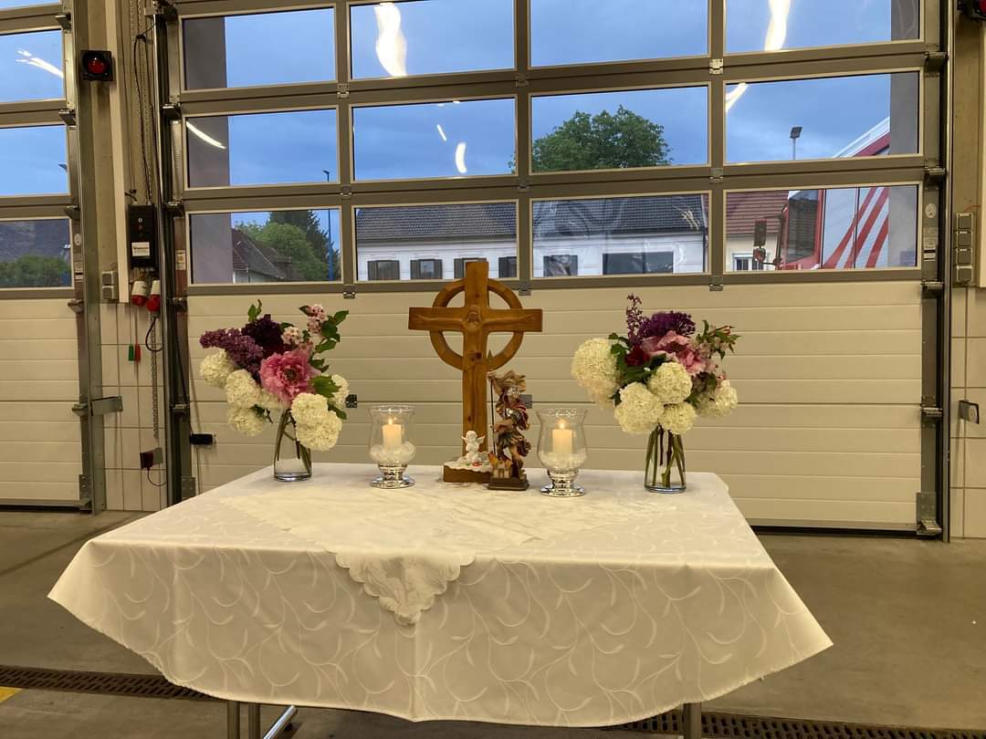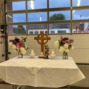 Maiandacht im Feuerwehrhaus mit Dank an die Feuerwehrkameraden:innen, die Tag und Nacht für unsere Sicherheit da sind und über uns wachen!