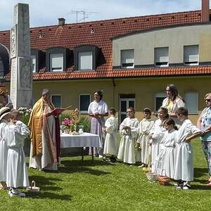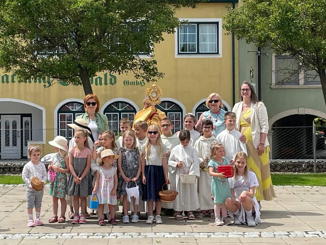 Bei wunderschönen Wetter konnte die Fronleichnamsprozession durchgeführt und das Allerheiligste unter dem Himmel durch die Ortschaft getragen werden.