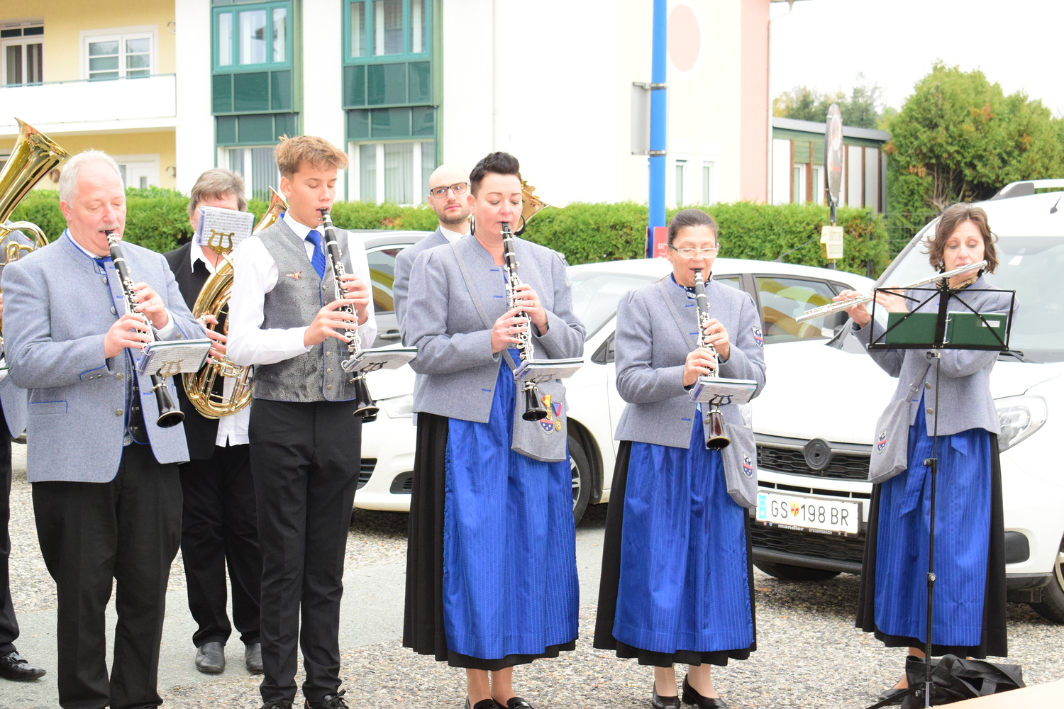 Die Erntekrone wurde von Täuflingen der vergangenen fünf Jahrzehnte getragen – Susanne Riffl (getauft am 27. Oktober 1974), Katharina Stipsits (1984), Philipp Brunner (1994), Saskia Winkler (2004). Max Popofsits (2014) trug ein farbenfrohes Bild der Hl. Geist Kirche und mit Täufling Helene Franz (2024) wurde ein Brot mit in die Kirche getragen. Sie alle stehen symbolisch für die 1160 Kinder, die in der Hl. Geist Kirche getauft wurden. 381 Ehepaare haben in den vergangenen 50 Jahren den Bund der Ehe geschlossen, zwei Männer aus unserer Pfarre haben sich als Priester in den Dienst der Kirche gestellt. 1528 Menschen sind in dieser Zeit verstorben und uns in die ewige Heimat bei Gott vorausgegangen.