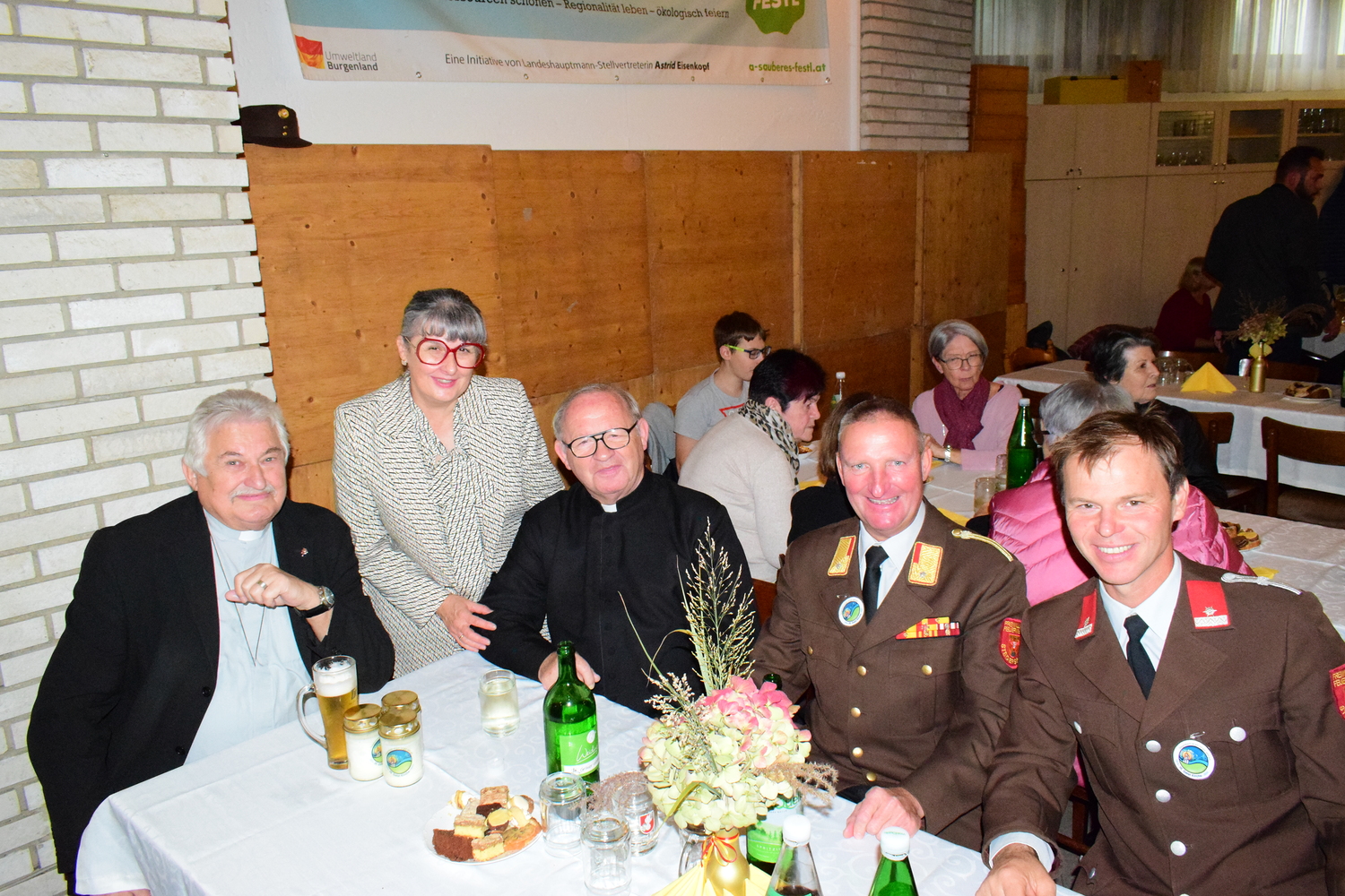 Am 26. Oktober 1974 wurde die Hl. Geist Kirche eingeweiht, am 26. Oktober 2024 feierten wir ihren 50. Geburtstag mit der Festmesse als Höhepunkt und Abschluss der Jubiläumsfeierlichkeiten. Einer, der schon vor 50 Jahren mit dabei war, war Bischof Ägidius Zsifkovics. Er zelebrierte gemeinsam mit Pfarrer Thomas Vayalunkal und Pfarrer i.R. Karl Hirtenfelder den Jubiläumsgottesdienst und erzählte in seiner Predigt von seinen persönlichen Erinnerungen an den Weihetag. Viele Ehrengäste, allen voran die Gemeindevertretung und Vereine, feierten mit.