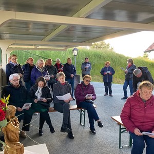 Am 15.05.2025 fand die Maiandacht in den Bergen statt. Wegen der Wetterunsicherheit waren wir bei Familie Novosel zu Gast.