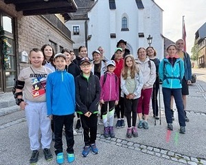 Unser Weg führte uns entlang der 4. Etappe des Pielach Taler Pilgerweges und so ging es zunächst rauf auf den Sabel, den die Minis bravourös meisterten. Wir hatten zwar ständig ein Begleitfahrzeug in der Nähe, aber noch wollte keiner einsteigen. Nach einer kurzen Rast ging es ab dem Sabel weiter nach Fadental und weiter zum Hubertussee mit der romantischen Bruder Klaus Kirche. Dort hatten wir uns alle eine lange Pause verdient.