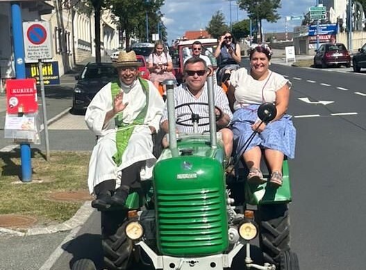 Anlässlich des Winzer und Trachtenfestes wurde am Sonntag den 24.08.2025 die Hl. Messe gefeiert. Anschließend wuden die Oldtimer-Traktoren gesegnet und eine gemeinsame Ausfahrt mit unserem Pfarrer Thomas gemacht.