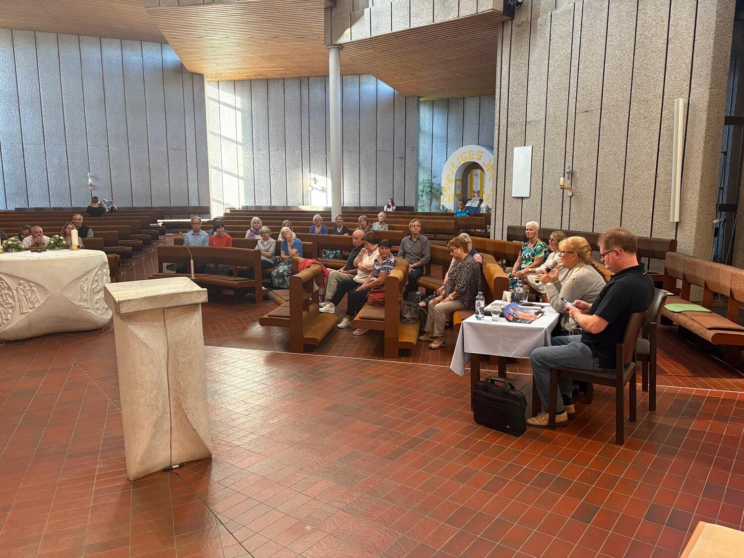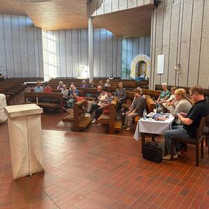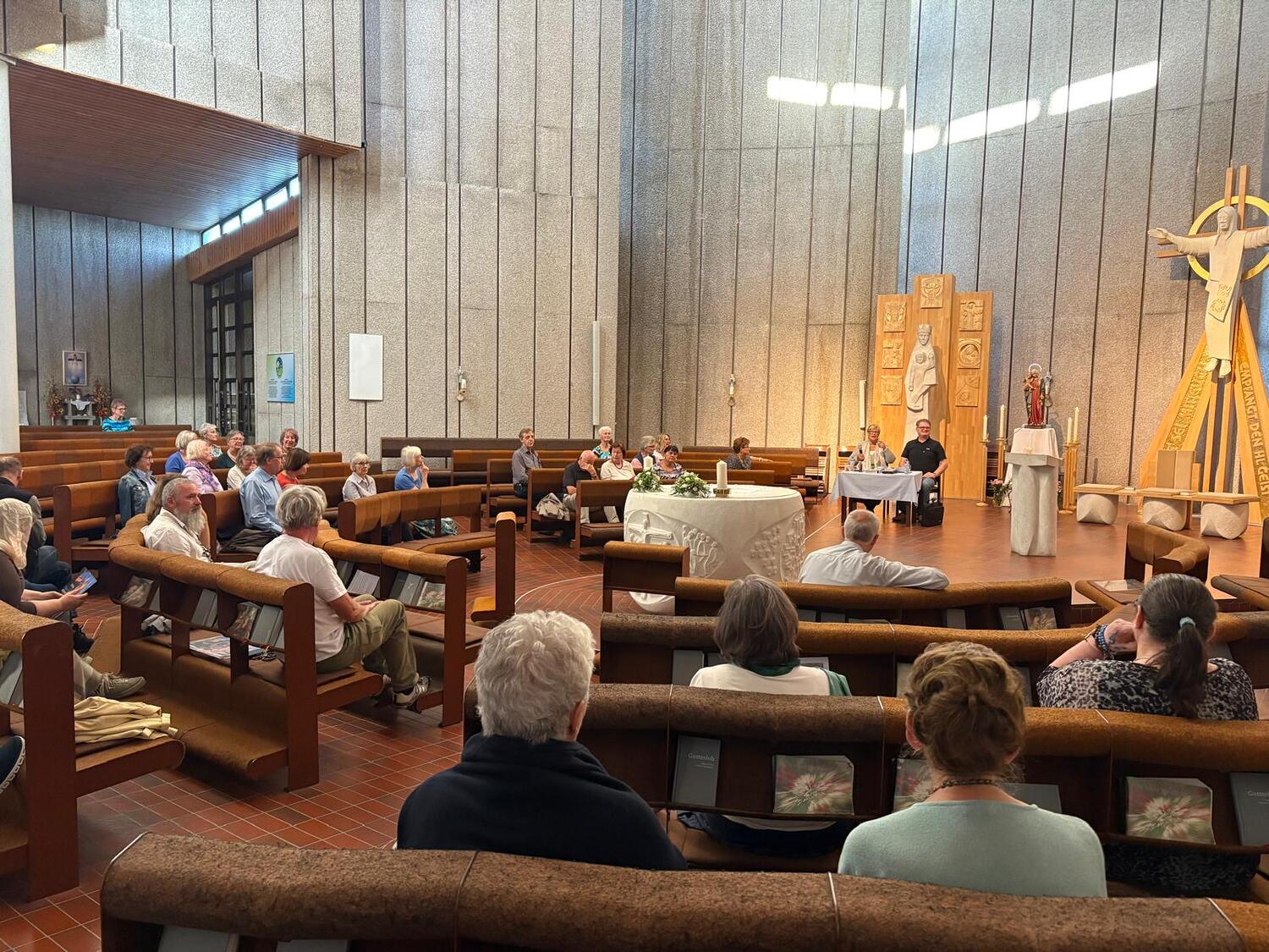 Beginnend mit dem Bamherzigkeitsrosenkranz gings weiter mit einem Vortrag zum Thema: "40 Jahre unterwegs mit der Königin der Liebe"