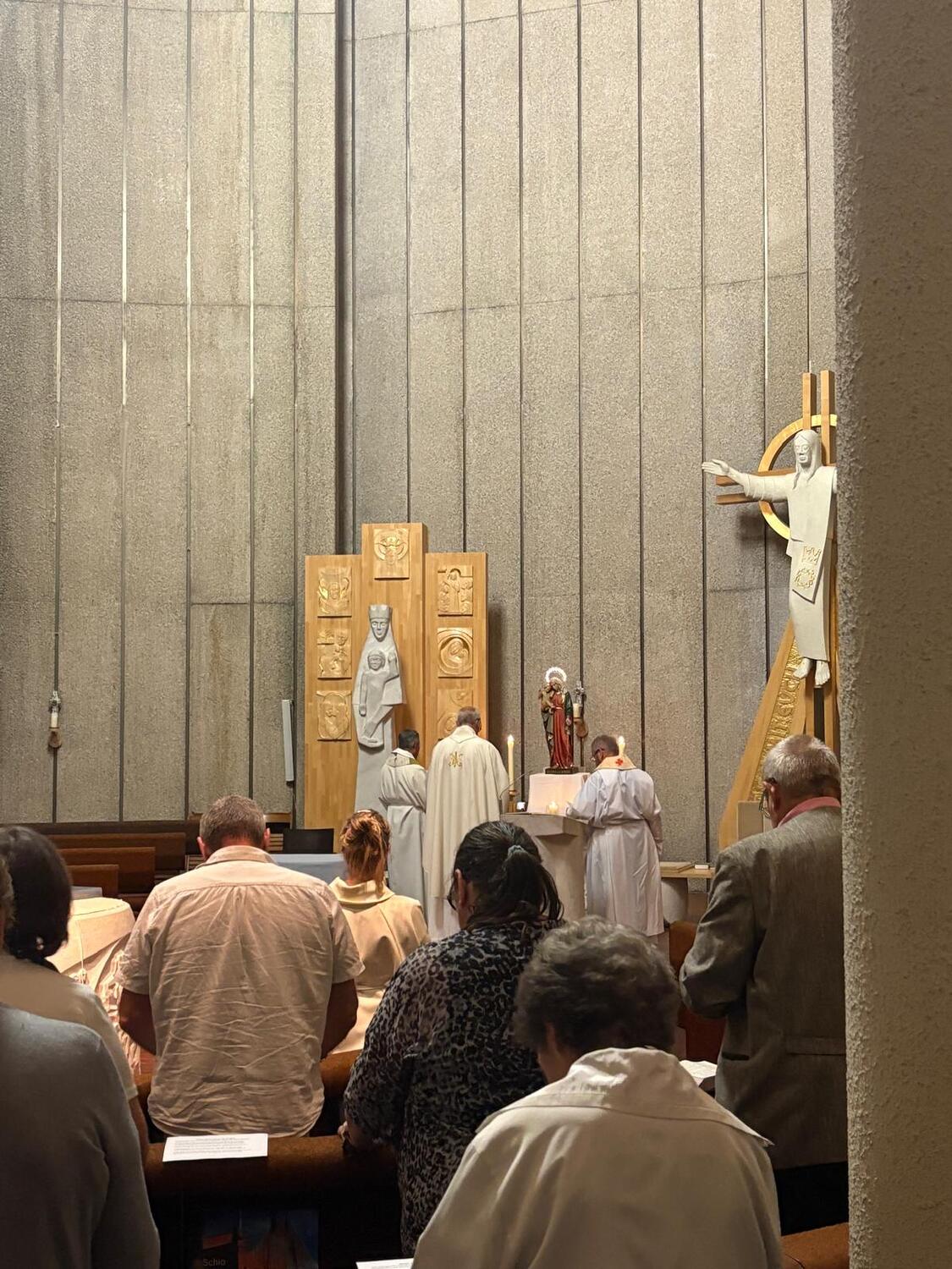 Um 17:00 Uhr fand die Eucharistische Anbetung mit Rosenkranz und Betrachtungen der Botschaften der "Königin der Liebe" statt und im Anschluss wurde eine Heiige Messe gefeiert.