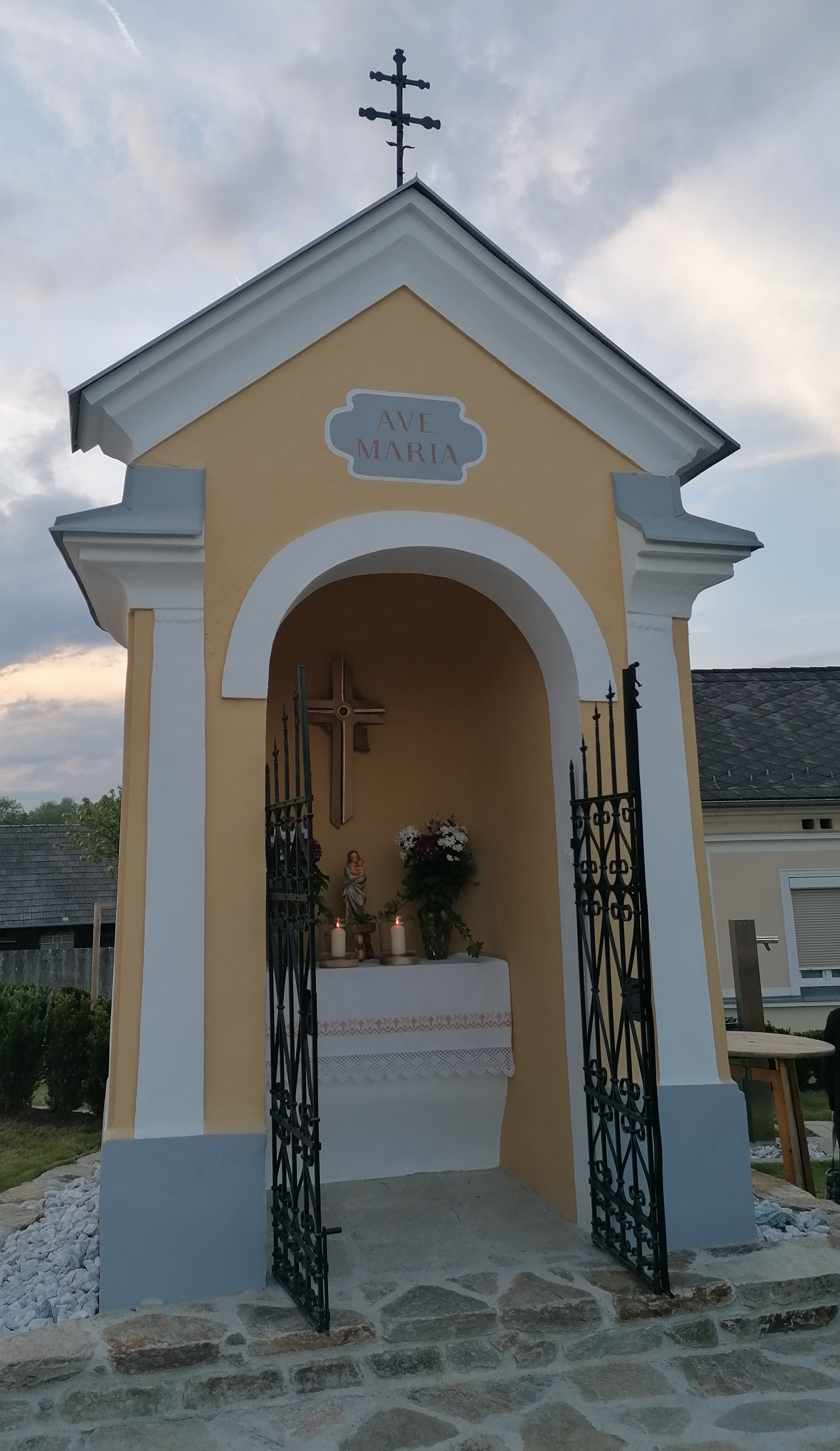 Die feierliche Segnung des Platzes sowie der Kapelle fand durch Pfarrer Thomas Vayalunkal am 10.05.2024 statt, welche im Zuge der Maiandacht durchgeführt wurde.