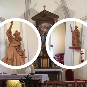 Errichtet 1790, Matriken 1790; Pfarrkirche: zum hll. Petrus und Paulus, erbaut 1819, erweitert 1883, renov. 1946, erweitert und renov. 1971/72, renov. 1977, bened. – Filialkirche zur Kreuzerhöhung in Hackerberg - Kapellen: Friedhofskapelle, Marienkapelle, erbaut 1867, renov. 1965, Florianikapelle, erbaut 1989, Schmidtkapelle in Neudauberg, erbaut 1951